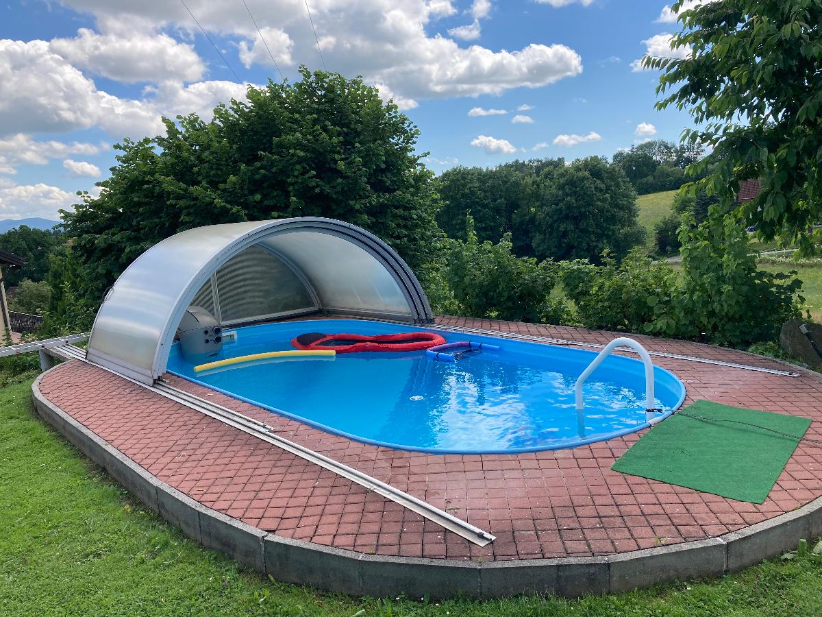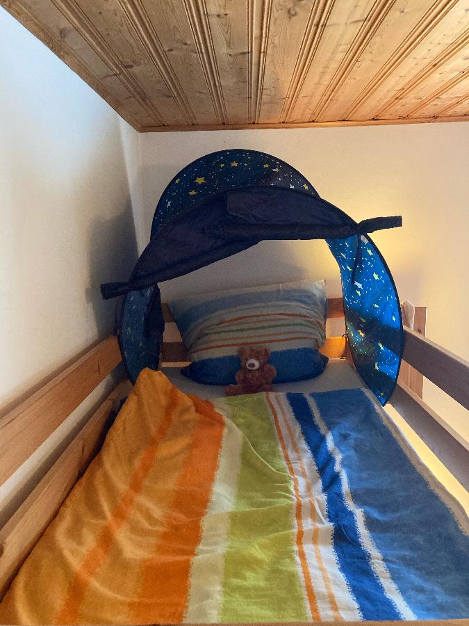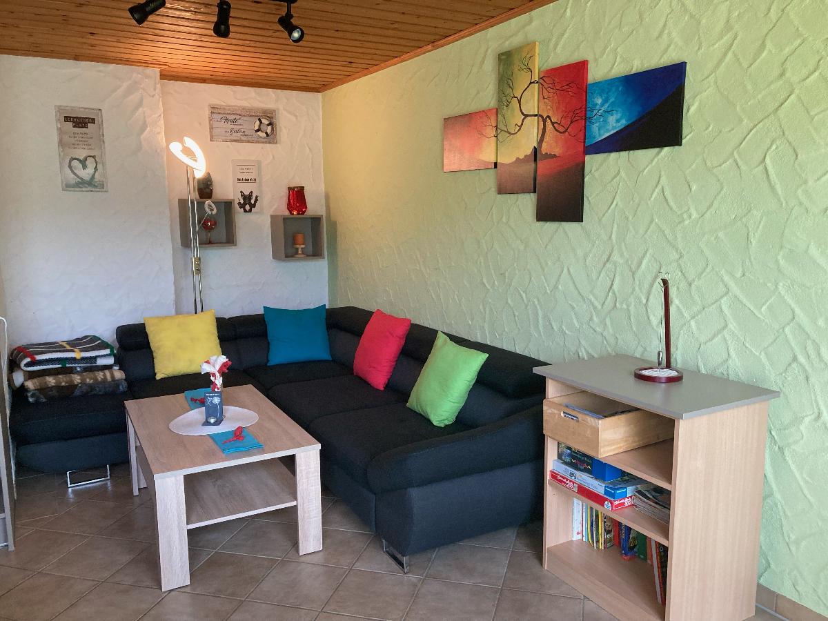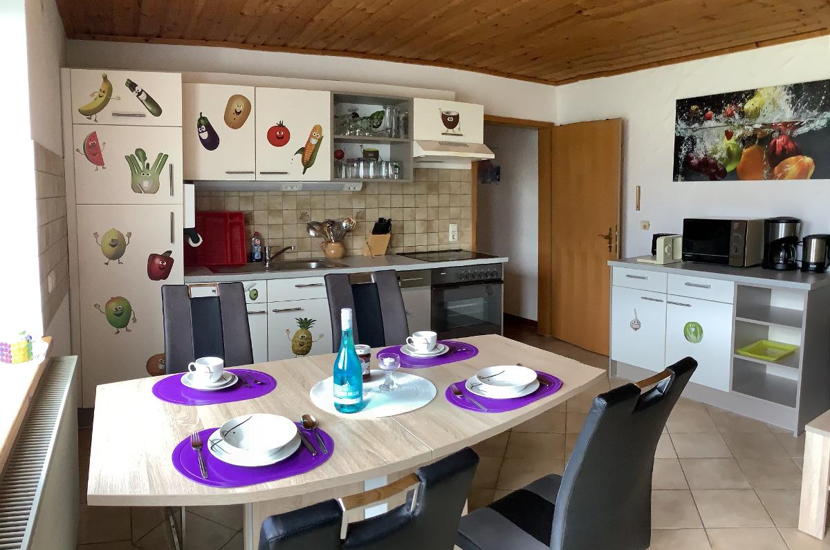 Unsere gemütliche Ferienwohnung mit 85 m² Wohnfläche bietet Platz für bis zu 6 Personen. Der Wohnraum mit Couch und Essplatz lädt zum Verweilen ein. Die komplett ausgestattete Küchenzeile mit Kühlschrank, Spülmaschine, Herd, Backofen, Mikrowelle, Wasserkocher, Toaster und Kaffeemaschine lässt keine Wünsche offen. Ein eigener Telefonanschluss ist vorhanden. Die Wohnung verfügt über 1 Schlafzimmer mit  Doppelbett sowie 1Schlafzimmer mit Doppelbett und Etagenbett. Alle Matratzen wurden in 2021 erneuert(u.a. Emma one). Für Babys sind die wichtigsten Utensilien wie Bett, Hochstuhl und Schaukelpferd vorhanden. Das geräumige Badezimmer mit Dusche und Badewanne rundet das Gesamtbild ab. Zum Reinigen Ihrer Kleidung stehen eine Waschmaschine in der Wohnung und ein Trockner im Haus gegen Gebühr zur Verfügung. Vor allem im Sommer können Sie entspannte Grillabende in unserem Garten verbringen. Der Gartenpool verfügt über ein Schiebedach und eine Gegenstromanlage. Von Mai/Juni bis September/Oktober wird der Pool über Solarplatten geheizt. Tierfreunde freuen sich über unsere freilaufenden Katzen, ein nicht mehr reitfähiges Pferd, drei Schildkröten und Fische.
