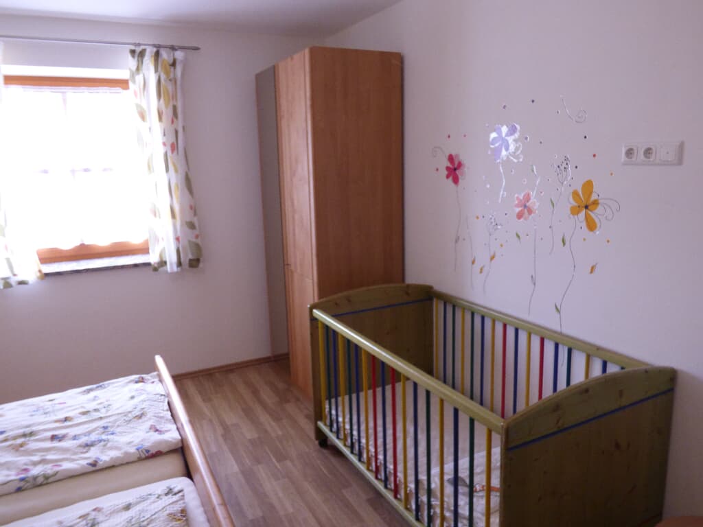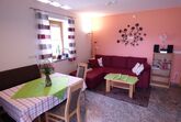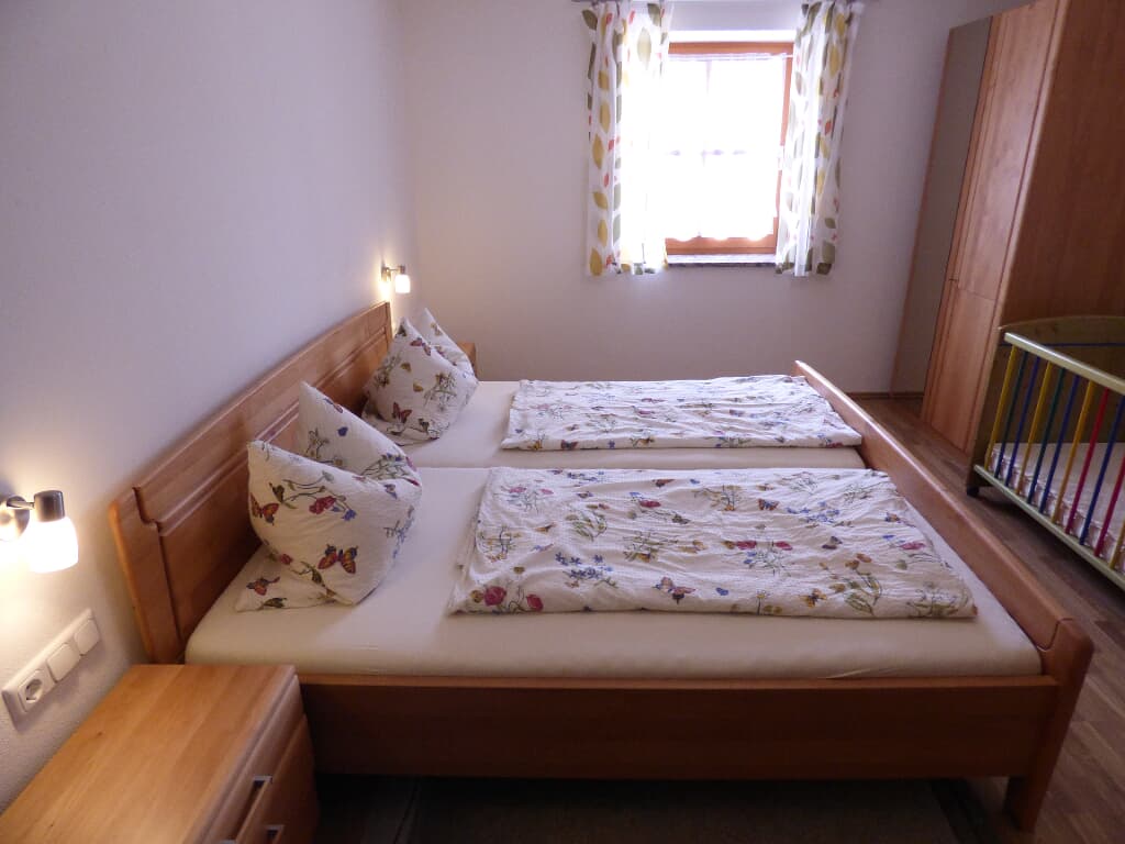 Die ruhige, modern eingerichtete Ferienwohnung Gartenblick (70 qm) im Erdgeschoss ist behindertengerecht und für 4 Personen ausgelegt. Die beiden Schlafzimmer verfügen jeweils über ein Doppelbett und ein Babybett. In der Wohnküche befindet sich eine voll ausgestattete Küchenzeile mit Backofen, Geschirrspüler, Kaffeemaschine, Kühlschrank, Mikrowelle, Toaster sowie Tisch- und Küchenwäsche. Der Wohnbereich ist mit einer gemütlichen Sitzecke, einem Sofa, Sat-TV und einem Radio eingerichtet. Das Badezimmer ist mit ebenerdiger Dusche, WC, Handtuchtrockner und Föhn ausgestattet. Auf der schönen Terrasse können Sie die Sonne genießen. Bettwäsche, Handtücher, Endreinigung, Parkplatz und WLAN sind im Preis inbegriffen.