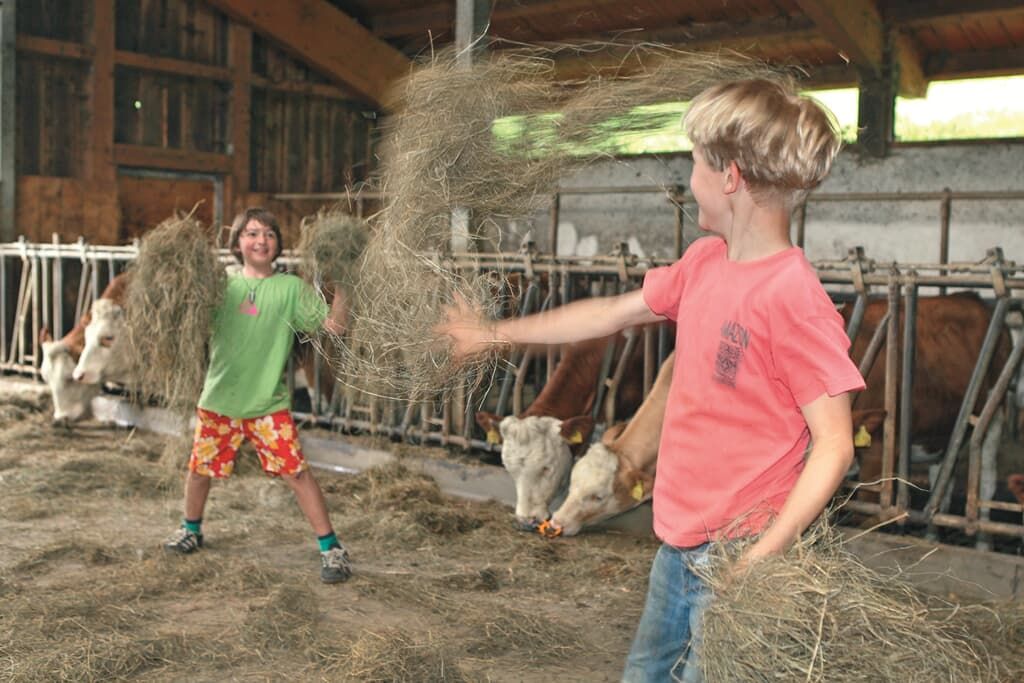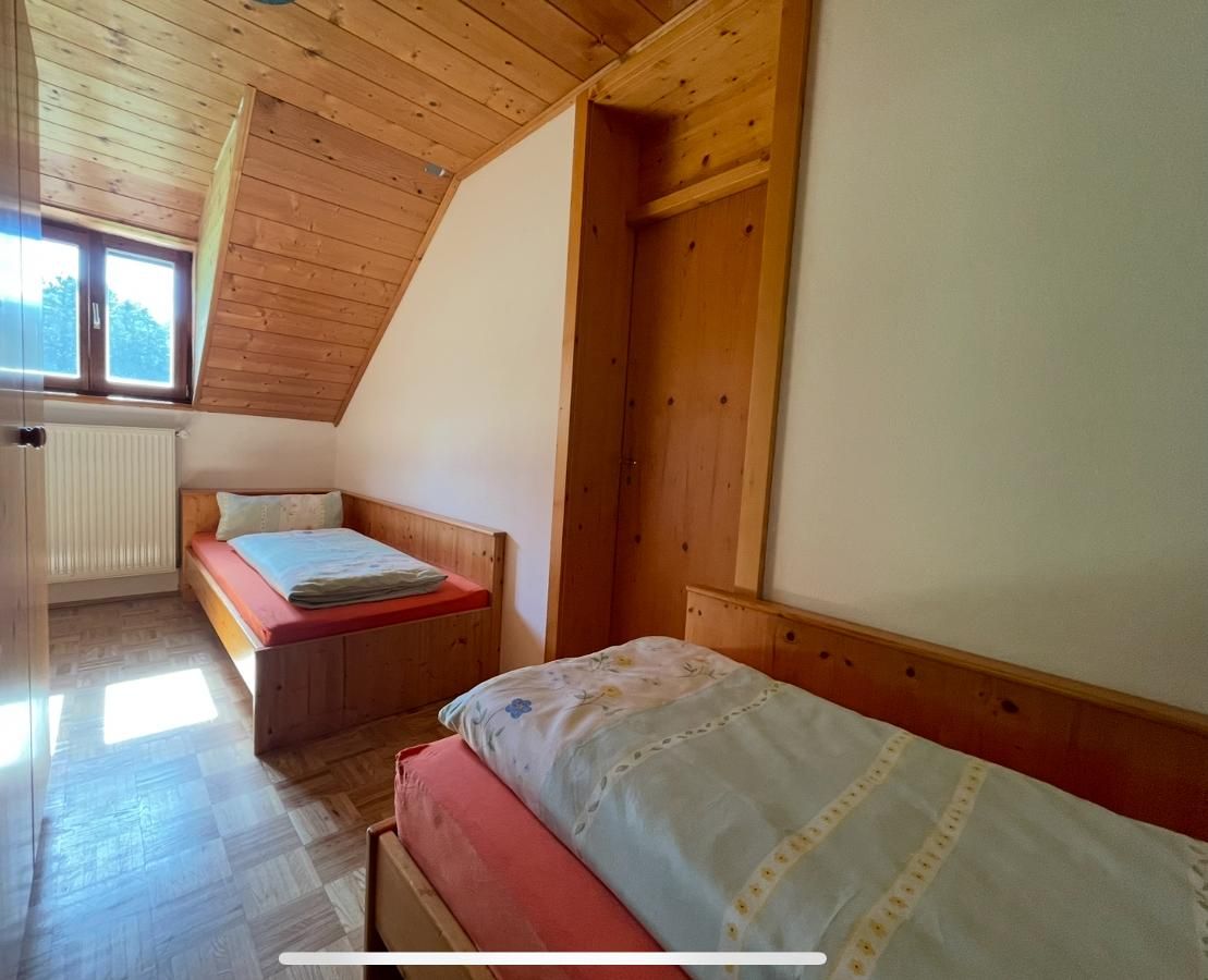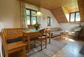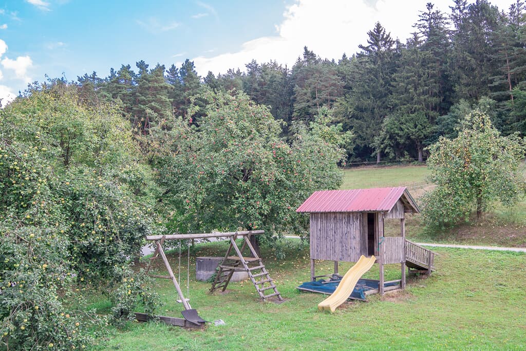 Ruhige und liebevoll mit schreinergefertigten Naturholzmöbeln, Holzfußböden und hochwertigen Naturmaterialien ausgestattete Ferienwohnung in der ersten Etage auf einem Bauernhof im Bayerischen Wald lädt ein zum Erleben, Entspannen und Genießen. Die Unterkunft liegt idyllisch über dem Regental mit herrlichen Rundblick. Das Urlaubsprogramm für die Kinder: Kälbchen füttern, Kälbchen spazieren führen, mit dem Bauer Traktor fahren, Stockbrot backen, außerdem kann man sich auf dem Spielplatz und den vielen Tretfahrzeugen austoben. Da kommt keine Langweile auf! 60 Quadratmeter Wohnfläche bieten Ihnen einen unvergesslichen Urlaub für Groß und Klein. Die Wohnung hat zwei Schlafzimmer mit einem Doppelbett und zwei Einzelbetten. Die Küchenzeile und ist ausgestattet mit Backofen, Geschirrspüler, Kaffeemaschine, Kühlschrank, Mikrowelle, Toaster, Mixer und Wasserkocher. Im Wohnbereich befindet sich ein Sat – TV und eine gemütliche Couch. Auf dem Balkon befinden sich Liegestühle und eine Sitzgelegenheit, wo Sie eine gute Einsicht auf den Spielbereich der Kinder haben. Eine Babyausstattung wie z.B. Kinderbett und Wickelkommode sind in der Wohnung vorhanden.