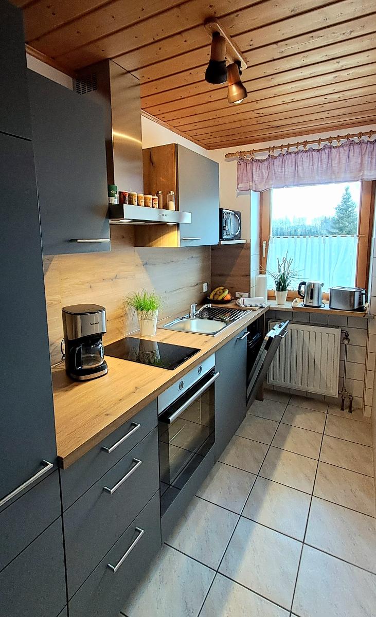 Die komplett ausgestattete Küche mit Kühlschrank inkl. Gefrierfach, Herd mit 2 Ceranfelder, Backofen, Geschirrspülmaschine, Mikrowelle, Dunstabzug, Wasserkocher, Toaster und Kaffeemaschine lässt keine Wünsche offen.
