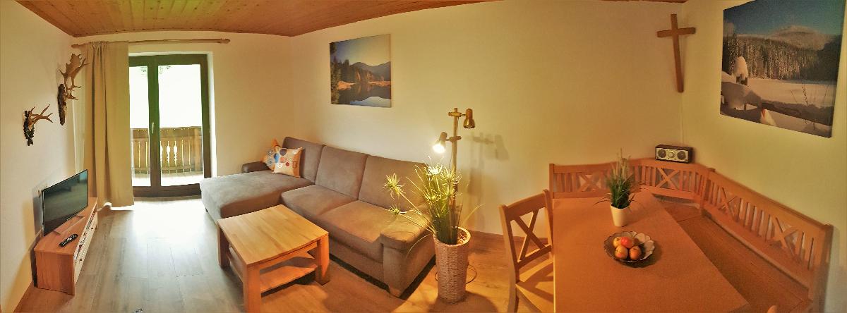 Unsere neu renovierte Ferienwohnung Enzian mit bestuhlten und überdachten Südbalkon und ca. 70 qm Wohnfläche bietet ausreichend Platz für 2 - 4 Personen.