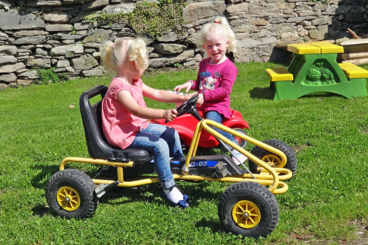 Tretfahrzeuge, Spielhaus und eine Spielscheune mit Tischkicker,