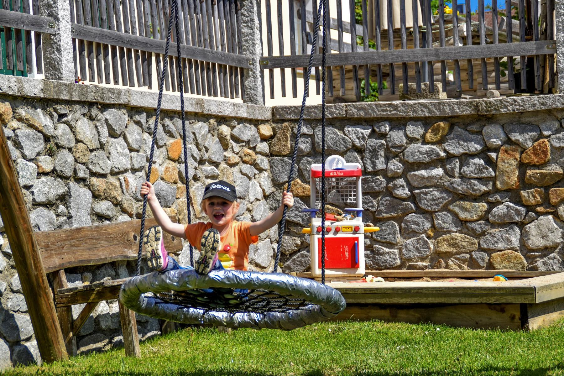 Spielgeräte wie Schaukel, Rutsche, Trampolin, Sandkasten,