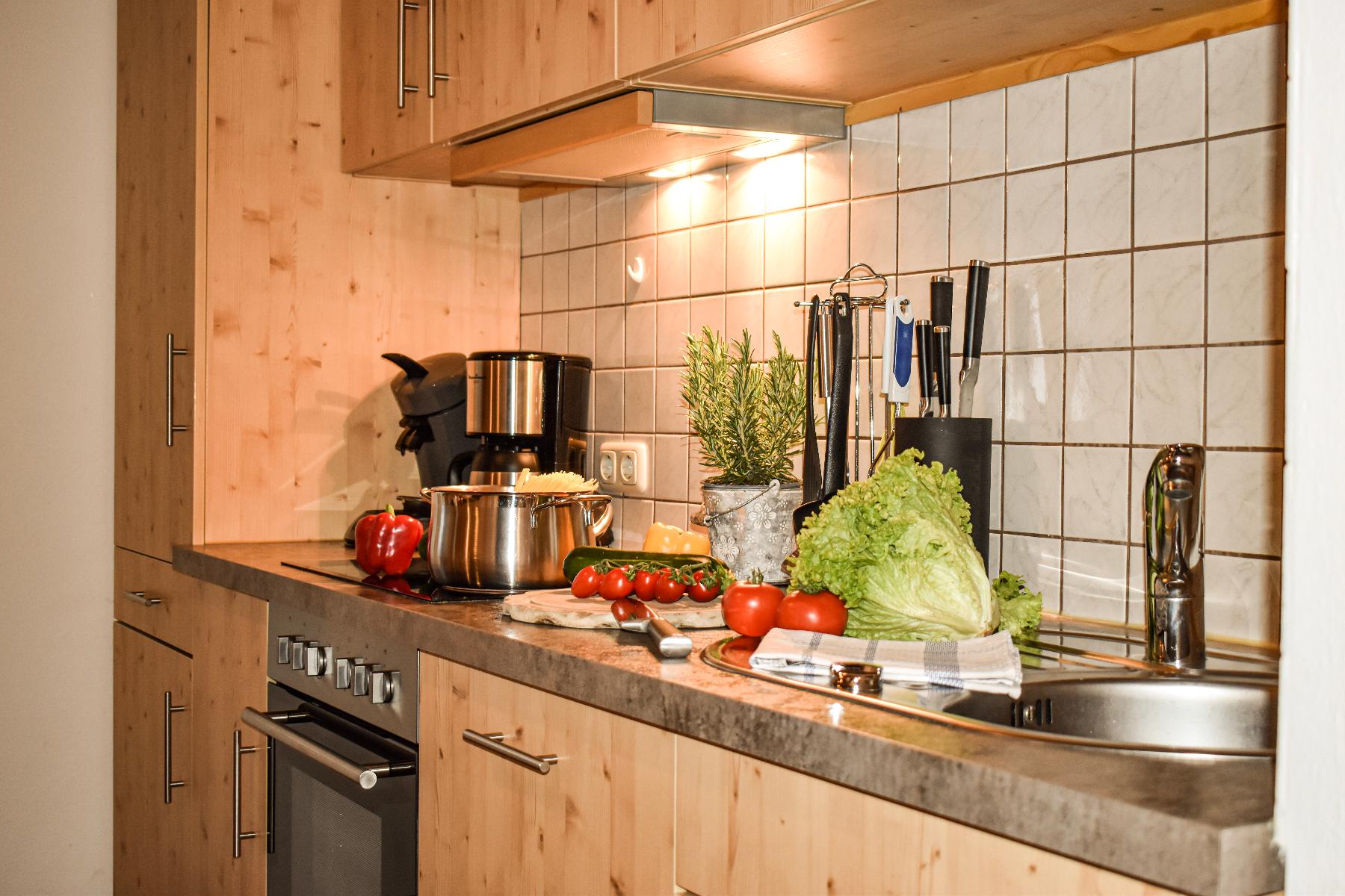 Vollausgestattete Küche mit Spülmaschine, Kühlschrank mit Gefrierfach, E-Herd mit Backofen, Kaffee-