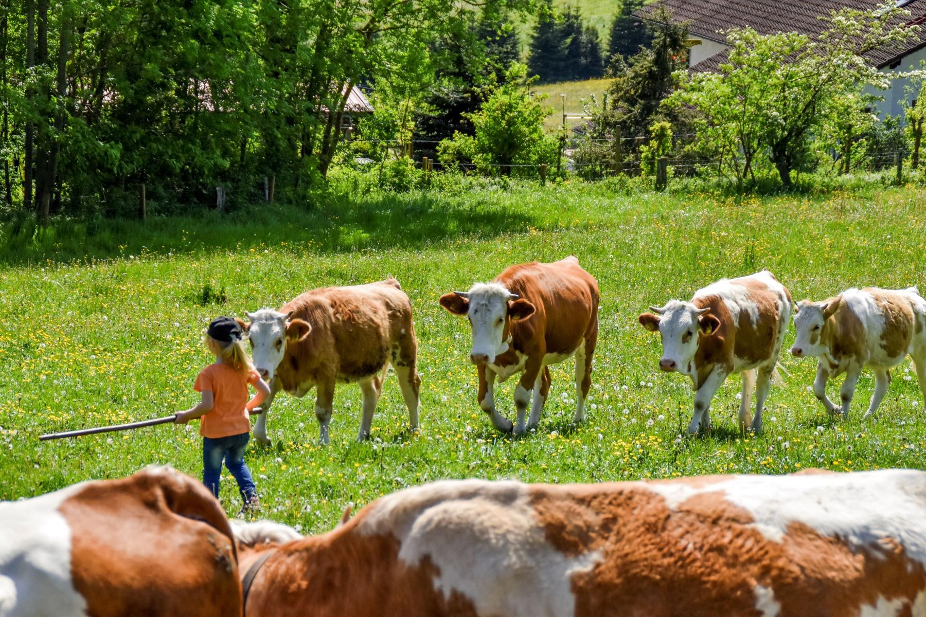Kälber auf die Weide bringen und abends wieder holen, frische Betten für