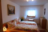 Doppelzimmer mit DU/WC, Fön, Sat-TV mit Flachbildfernseher, W-LAN, Radiowecker, Kühlschrank, Balkon, Südwestlage mit Fernblick, reichhaltigem Frühstück. Parkplatz, Liegewiese mit Kneipbrunnen sowie Rodelmöglichkeit im Winter am Haus. Kinderbettzustellung auf Anfrage möglich (für Kinder bis ca. 3 Jahre)