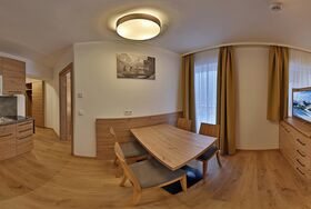 Unsere Kategorie Appartement Kleiner Priel mit einem wunderschönen Bergblick auf das gesamte Priel Massiv. Die modern- rustikalen Appartements verfügen über eine voll ausgestattete Küche, Bodenheizung, kostenloses Wlan, Safe, jeweils 2 Flat Sreen TV´s und Balkon.