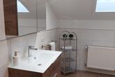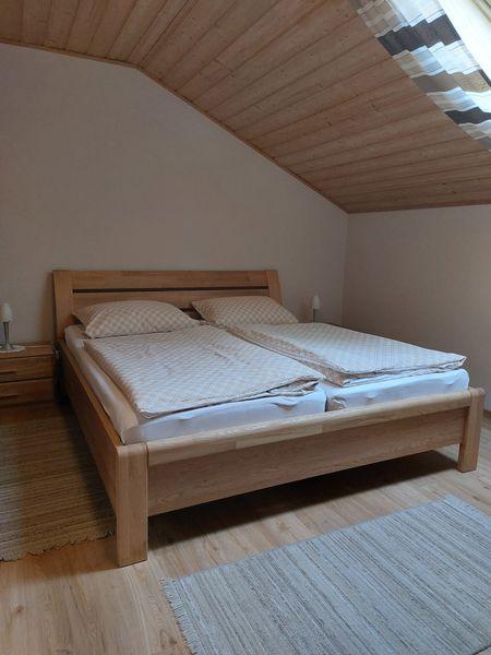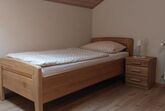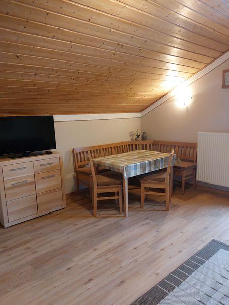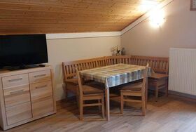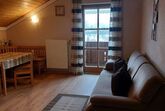 Die Ferienwohnung befindet sich im Dachgeschoss, ist ca. 60 m² groß und geeignet für 2 - 3 Personen. Sie hat ein großes Schlafzimmer mit einem Doppelbett und einem Einzelbett, eine Wohn- und Essecke mit TV, eine vollausgestattete Küche mit Kühlschrank, E-Herd mit Backofen, Kaffeemaschine, Wasserkocher und Toaster und ein Badezimmer mit Dusche und WC. Außerdem finden Sie auf dem Balkon Gartenmöbel vor.