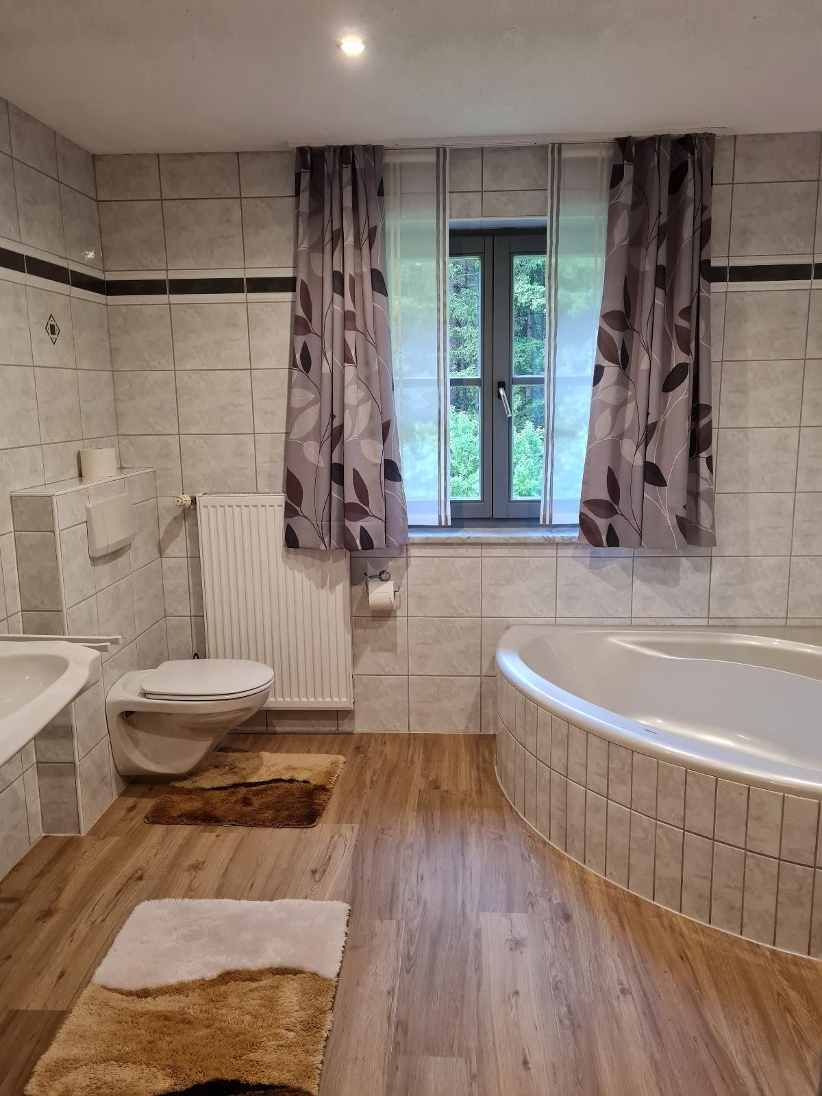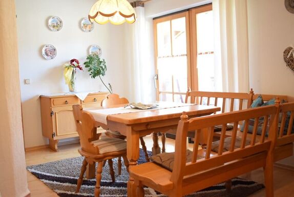 Die gemütliche Ferienwohnung im Landhausstil bietet auf 100 qm Wohnfläche Platz für bis zu 6 Personen. Die Wohnung verfügt über eine komfortabler Ausstattung. Das Wohnzimmer mit Kachelofen, TV, Sofa und Essbereich lädt zum Verweilen ein. Die Ferienwohnung verfügt über drei Schlafzimmer, die jeweils mit einem Doppelbett ausgestattet sind. Die vollausgestatte Küche mit Herd, Backofen, Kühlschrank inklusive Gefrierfach und Mikrowelle lässt keine Wünsche offen. Das Badezimmer mit Dusche, Badewanne und WC rundet das Gesamtbild ab. Zudem gibt es noch ein separates WC. Auf dem Erkerbalkon sowie der Liegewiese können Sie entspannte Stunden verbringen. Bettwäsche und Handtücher sind inklusive. WLAN steht kostenfrei zur Verfügung. Im Haus befindet sich zudem eine Waschmaschine.