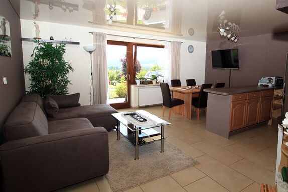 Das neu renovierte Appartement verfügt über eine große Wohnküche mit allen erdenklichen Extras wie großem Flat Screen TV, WLAN, gemütliche Essecke, Spülmaschine und vielen Elektrogeräten.In den Wintermonaten schafft die Fußboden- und Wandheizung ein angenehmens Raumklima und somit eine optimale Ergänzung zur Wohlfühlamtmosphäre der gesamten Wohnung.