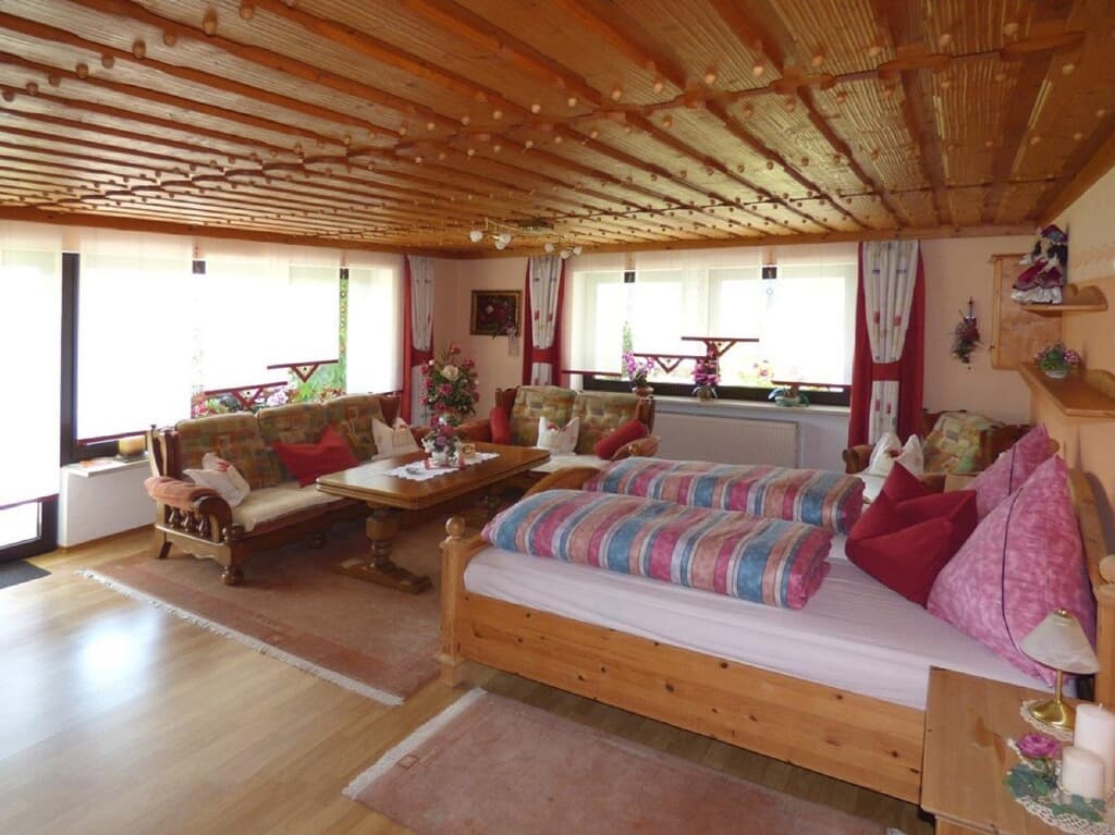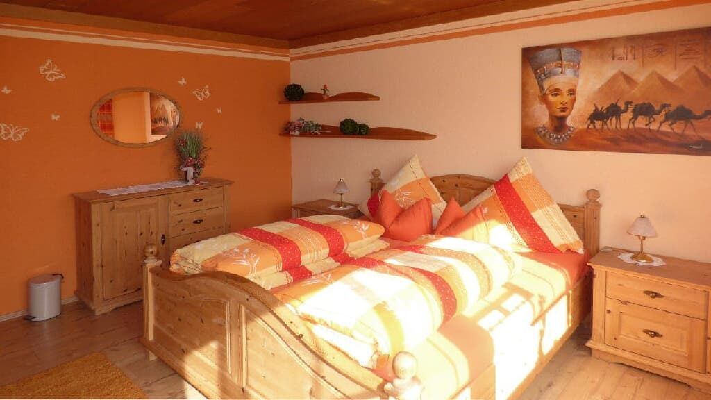 Sie wohnen in einer liebevoll und komfortabel eingerichteten 4-Sterne-Ferienwohnung im Untergeschoß, ca. 75 qm groß, für 2- 4 Personen mit 2 Schlafzimmern. Eine komplett einegerichtete Wohnküche mit Eckbank, Tisch und 2 Stühlen, Sat-Fernseher, Radio, Spülmaschine, Kaffee-und Brotmaschine, Senseo, Eierkocher, Wasserkocher, Mikrowelle, Toaster, ausreichend Kochgeschirr, Geschirrtücher. 1 Dusche und WC, 1 Garage oder Autoabstellplatz, eigener Eingang, Terrasse mit Liegewiese und Gartenmöbel, Kinderschaukel, 1 große Diele mit Telefon. Keine Monteurwohnung! Die Endreinigung wird vor Ort separat berechnet und kostet 40,-EUR