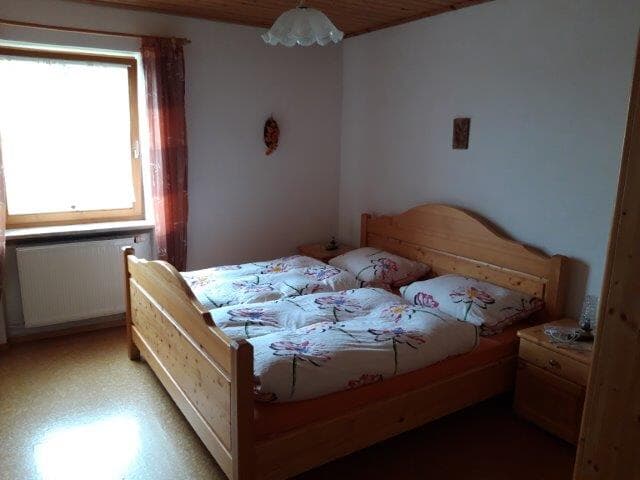 Wir, das sind die Familie Bindl mit 3 Söhnen betreiben einen Nebenerwerbsbauernhof mit Mutterschweinen samt Ferkeln, in dem ca. 200 Einwohner zählenden Dorf Biberbach bei Treffelstein. Unsere beiden Ferienwohnungen in Südhanglage sind über eine überdachte Terasse ebenerdig begehbar und jeweils 60 qm groß. Sie sind gemütlich mit Vollholzmöbeln eingerichtet und beinhalten ein Kinderzimmer mit drei Betten (Etagen- und Einzelbett sowie ein Elternschlafzimmer mit Doppelbett, eine Wohnküche mit Sofaecke, Eckbank und Küchenzeile, Bad mit Dusche und WC. Der geräumige Hof bietet mit etlichen Kinderfahrzeugen, Sandplatz, Spielhäuschen, Karusell, Rutsche und Schaukel, jede Menge Platz zum Spielen und Toben für Kinder. Die wiesen- und waldreiche Gegend um unseren Hof lädt ein zum Wandern und Spaziergehen oder einer Fahrradtour. Zwei naheliegende Badeseen sorgen für Abkühlung an heißen Tagen. Auch andere Ausflugsziele, wie Tschechien, der Nationalpark Bayerischer Wald, der Waldwipfelweg und die Sommerrodelbahn in St. Englmar sowie die Glasstraße Arnbruck, Zwiesel und Bodenmais lassen keine Langeweile aufkommen. Der Gastgeberfamilie liegt es am Herzen, dass sich ihre Gäste wohlfühlen!
