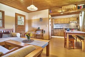 Wir haben gemütliche und wunderschön eingerichtete Ferienwohnungen (4-Sterne) und ein neues herrliches Holzhaus,( 5 Sterne ) das mit dem Holz einer 150-jährigen Scheune gebaut wurde.