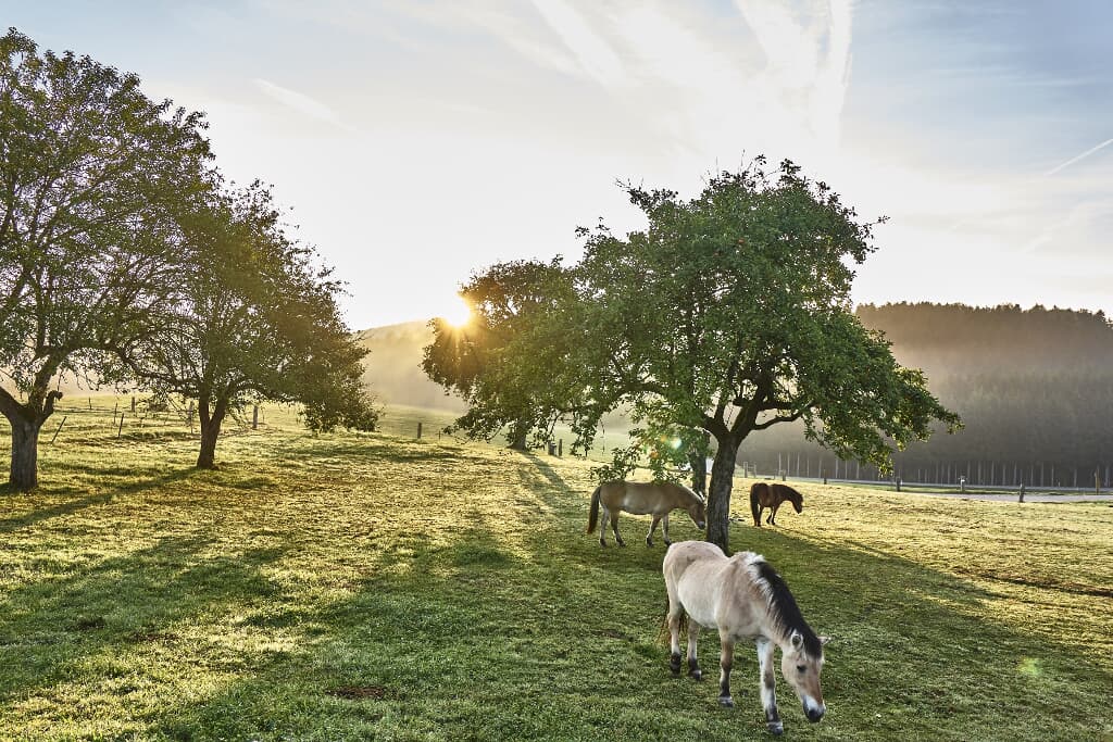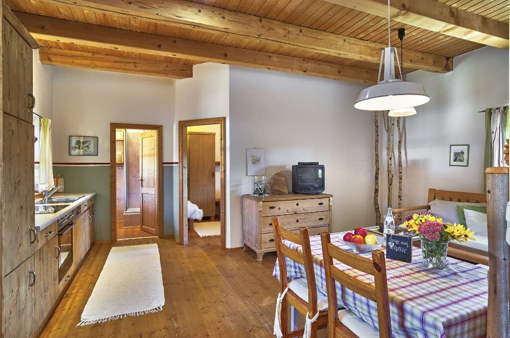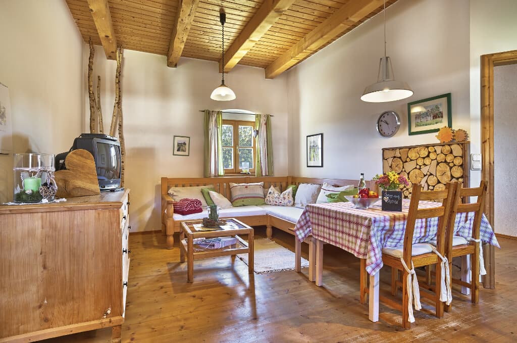 Wir haben gemütliche und wunderschön eingerichtete Ferienwohnungen (4-Sterne) und ein neues herrliches Holzhaus,( 5 Sterne ) das mit dem Holz einer 150-jährigen Scheune gebaut wurde.