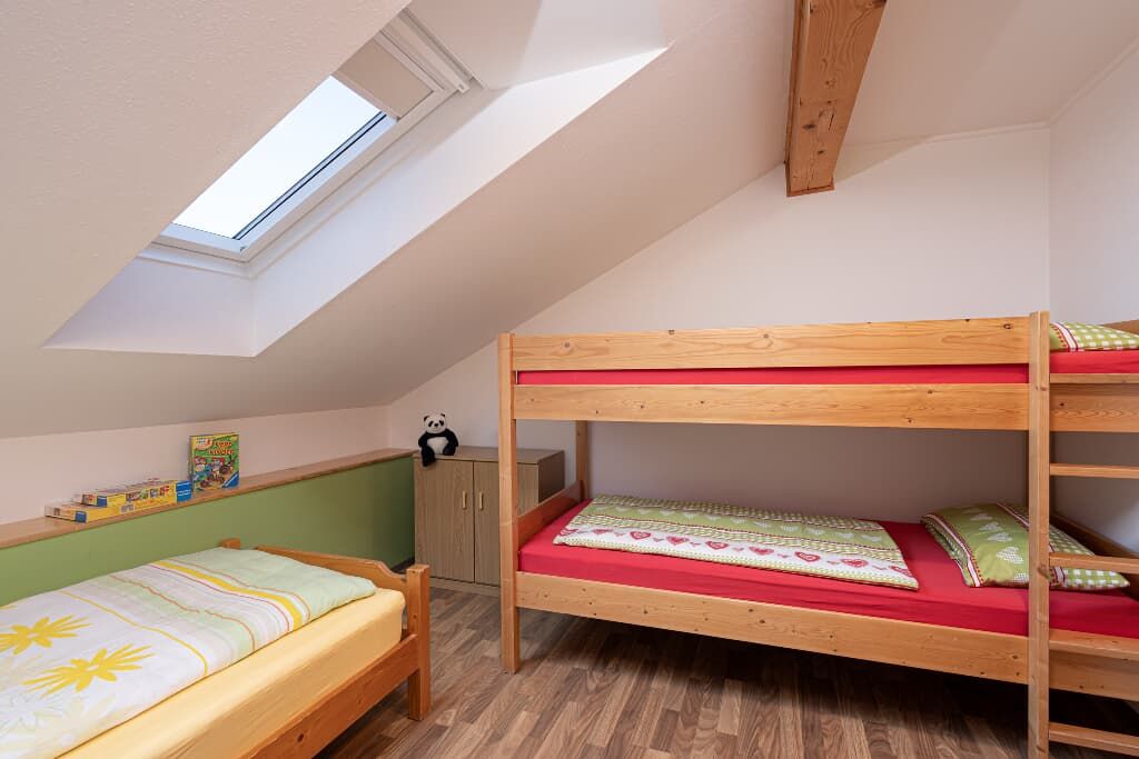 2 Personen mit Doppelbett und ein Kinderzimmer für 3 Personen mit Etagenbett und Einzelbett.