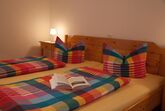 Die Ferienwohnung 60m² befindet sich im 1. Stock. Das Elternschlafzimmer ist mit einem Doppelbett und einem Schrank ausgestattet, das Kinderzimmer mit zwei Einzelbetten. Beide Zimmer verfügen über einen Zugang zum Balkon. Die Wohnküche ist mit einem Kühlschrank mit Gefrierfach, Elektroherd mit Ceranfeld und Backofen, Geschirrspüler, Wasserkocher, Kaffeemaschine und Geschirr ausgestattet. Im Wohnbereich befindet sich eine Essecke, ein Sofa, TV mit DVD-Player und Ministereoanlage. Im Badezimmer finden Sie eine Badewanne mit Duschwand, Waschbecken, Fön und Kosmetikspiegel. Ein separates WC ist gegenüber vom Bad. Die Wohnung ist teilweise mit Fliegengitter ausgestattet. Endreinigung, Parkplatz, WLAN-Nutzung, Handtücher und Bettwäsche sind im Preis inbegriffen.