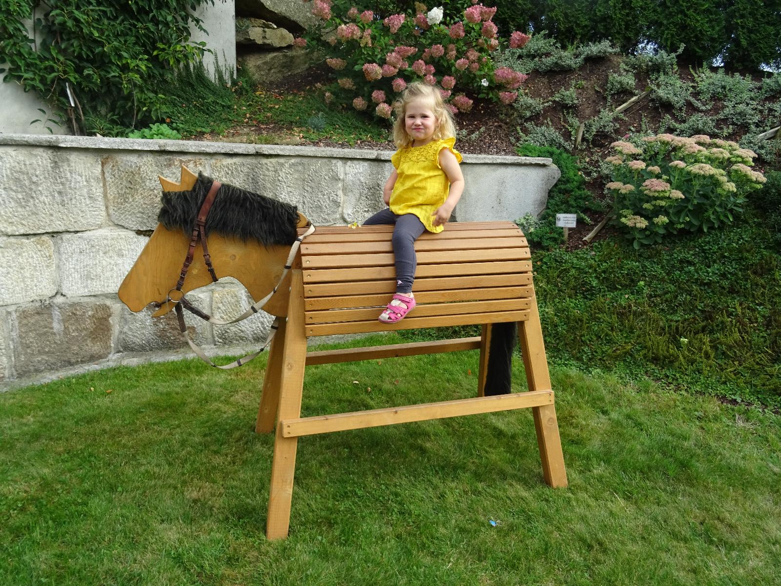 Auf dem Hof gibt es Kühe, Kälber,Hühner, Hasen, Katzen und ein Pony namens Ella, auf der kleine Gäste reiten können.