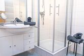 Die Ferienwohnung 40m² befindet sich im 2. Stock. Das Schlafzimmer ist mit einem Doppelbett und einem Schrank ausgestattet. Die Wohnküche verfügt über einen Zugang zum Balkon. Die Wohnküche ist mit einem Kühlschrank mit Gefrierfach, Elektroherd mit Ceranfeld und Backofen, Wasserkocher, Kaffeemaschine und Geschirr ausgestattet. Im Wohnbereich befindet sich eine Essecke, ein Sofa, TV und Radio. Dusche und WC befinden sich in einem Raum, ausgestattet mit Waschbecken und Fön. Die Wohnung ist teilweise mit Fliegengitter ausgestattet. Parkplatz, WLAN-Nutzung, Handtücher und Bettwäsche sind im Preis inbegriffen.