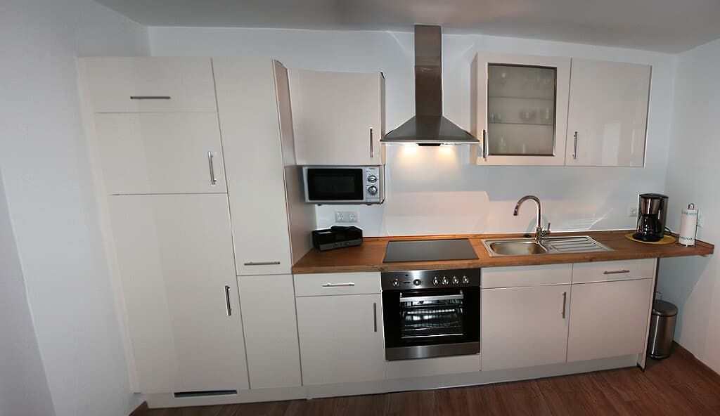 In unserer ebenerdigen Ferienwohnung im Haupthaus mit herrlicher Aussicht bieten wir Ihnen auf 70 qm für 1-5 Personen: 2 getrennte Schlafzimmer mit je einem TV, Wohnküche mit TV-SAT-Anschluss, Badezimmer mit begehbare Dusche, Doppelwaschbecken und Fußbodenheizung, WC extra, Diele, Abstellraum, große Terrasse, Garten und Liegewiese, Grillmöglichkeit auf separater Terrasse, Autostellplatz vor dem Hause.