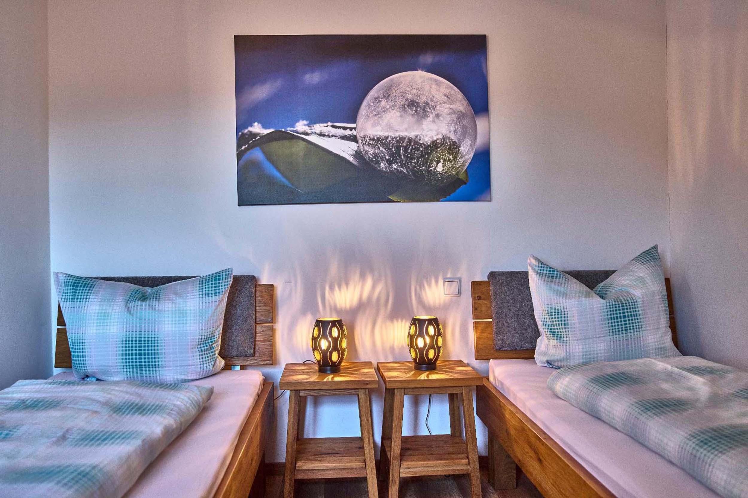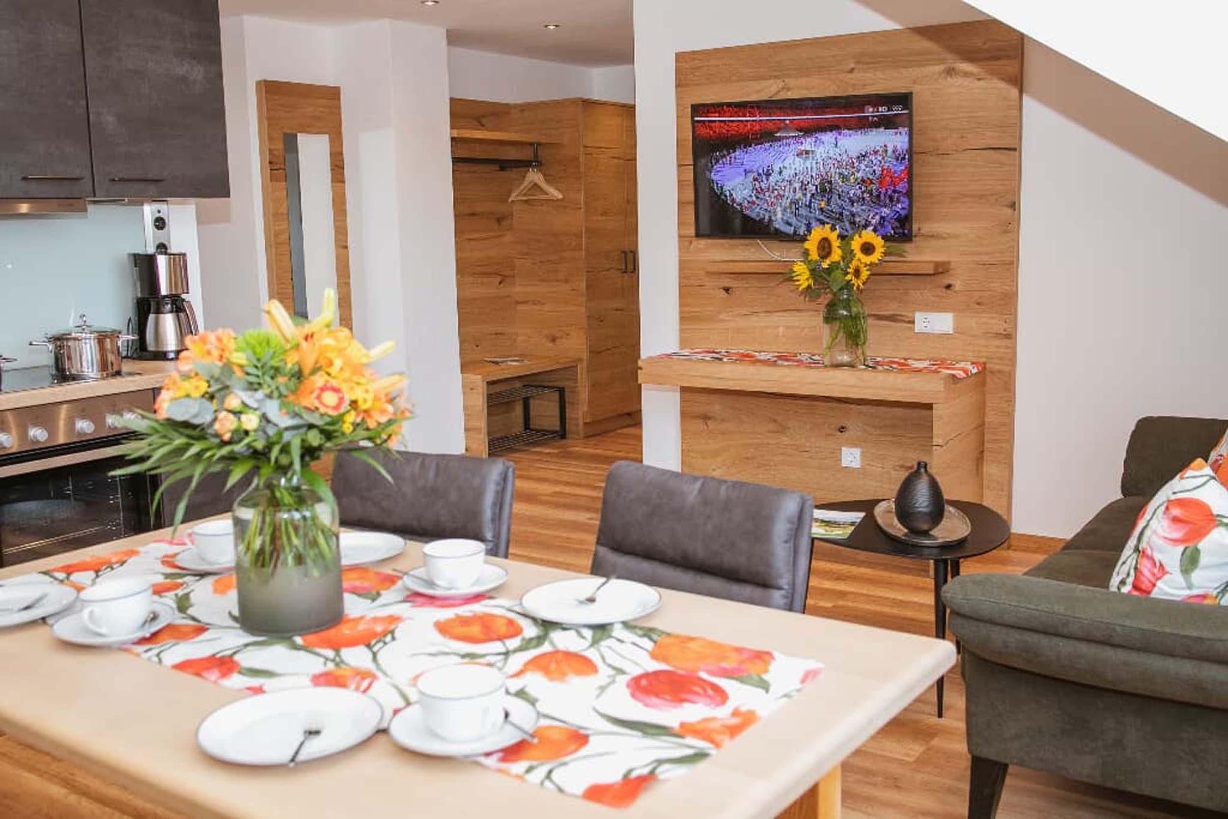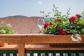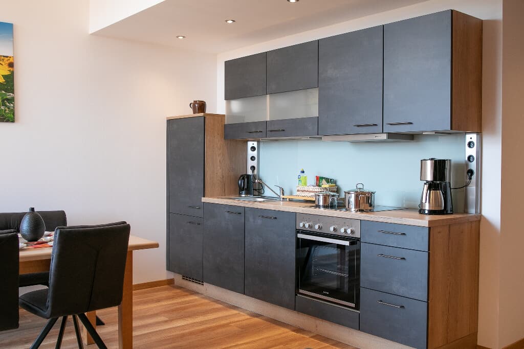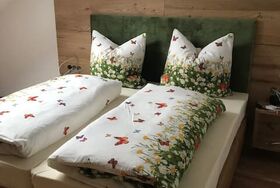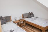 Eine von zwei neu gebauten Wohnungen im Dachgeschoss unseres Ferienhauses. Luxuriöse Ausstattung mit vom Schreiner gefertigten Möbeln und edlen Polstermöbeln. Drei getrennte Schlafzimmer mit 5 Betten, (2 Kinderzimmer mit Einem bzw. zwei Betten), voll ausgestattete Küche mit Geschirrspüler, Bad mit Walk-in-Dusche, Balkon im Süden bietet traumhafte Aussicht.
