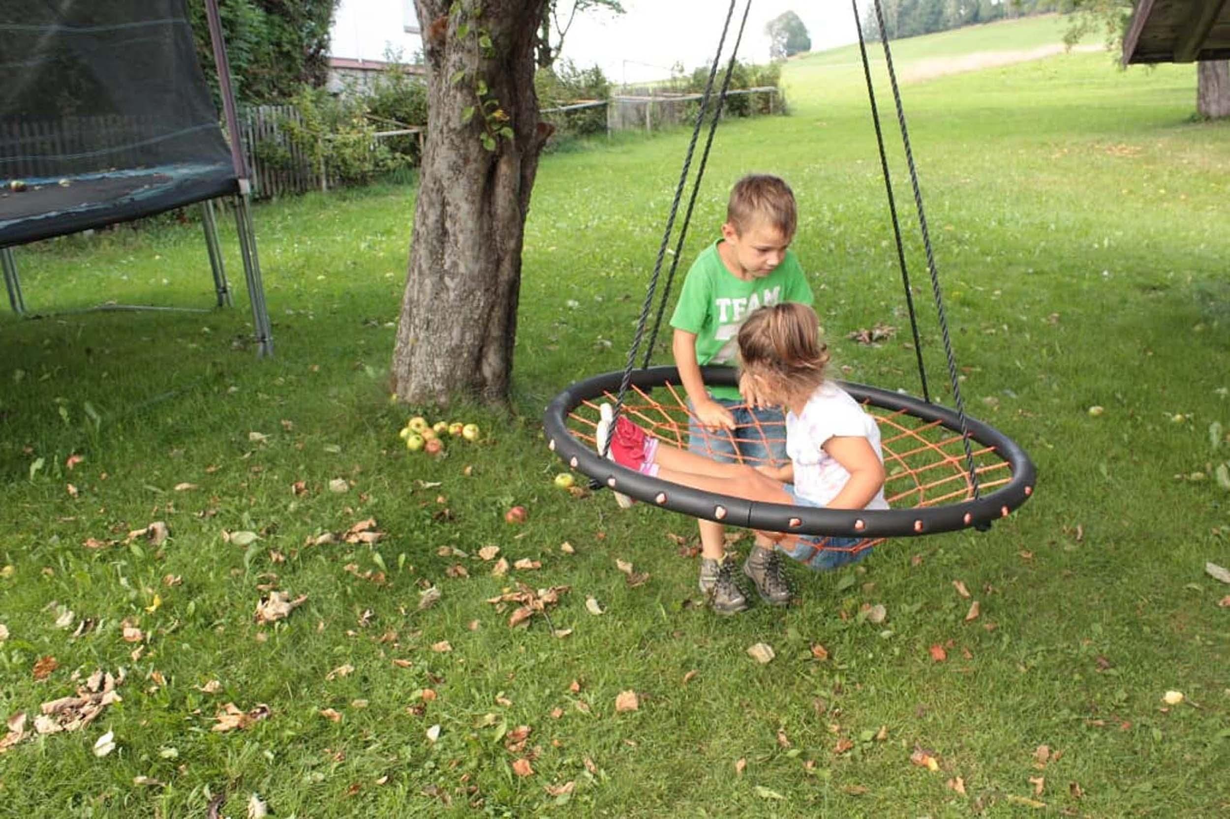 Eim Eingangsbereich Terrasse und überdachter Freisitz, Grill, Tischtennis, Kicker, Liegewiese im Obstgarten, Spielgeräte, Kinder-Tretfahrzeuge.