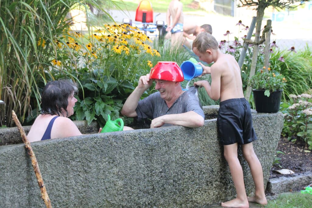 Grünlandbetrieb mit Tieren am Hof, Kinderspielplatz, Liegewiese, Gartenhaus und Grillplatz.
