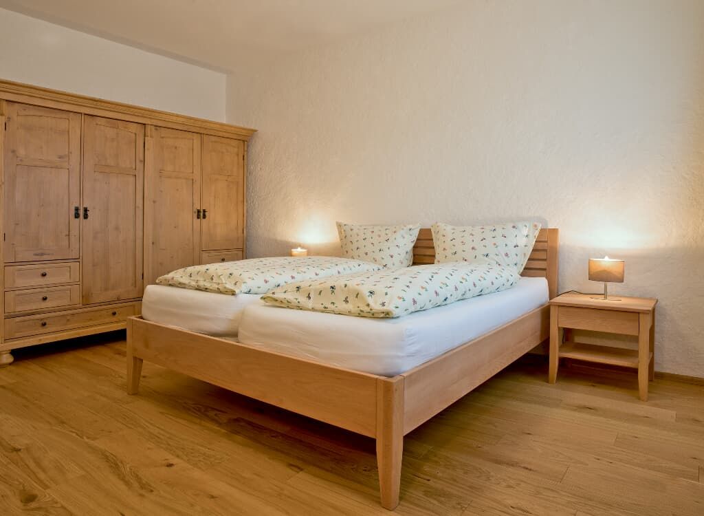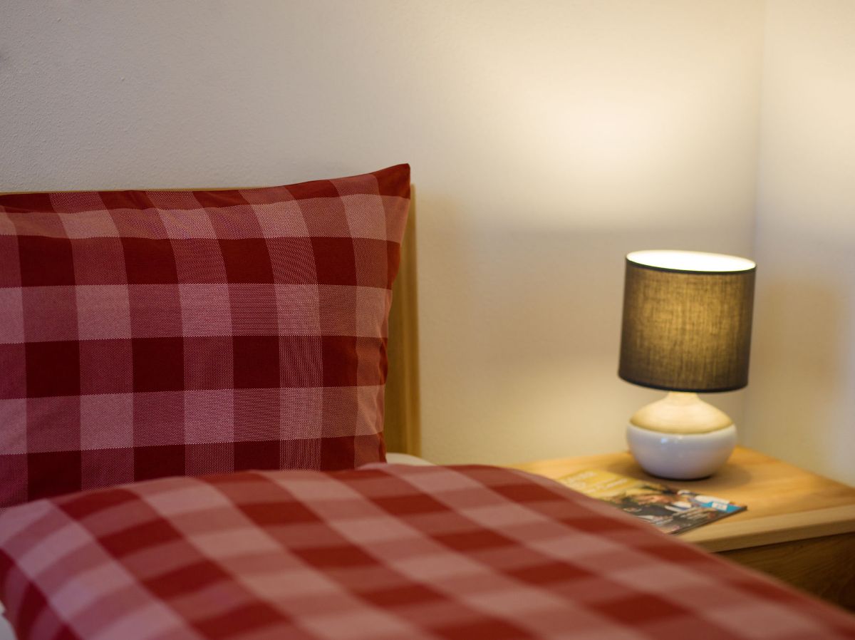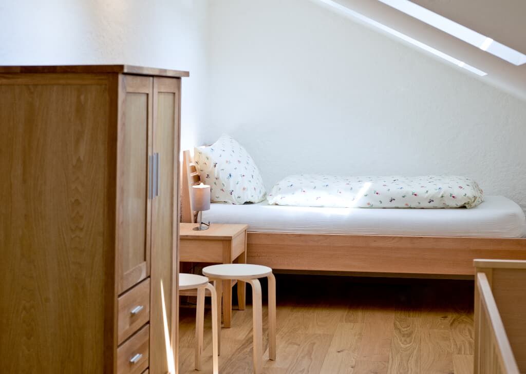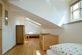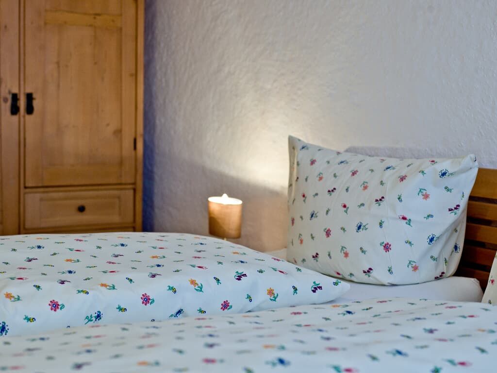 Ihre Ferienwohnung ist eine Mansardenwohnung und befindet sich im Haupthaus im 2. Stock. Die Wohnung verfügt über zwei separat begehbare Schlafräume. Die Wohnung verfügt über ein Badezimmer mit Dusche und WC und ein separates WC. Das große Wohnzimmer mit Küchenzeile verfügt über einen kleinen Balkon. Die Küche ist mit einer Spülmaschine, einem Ceranfeld mit Backofen und einem Kühlschrank mit Gefrierfach ausgestattet. Küchenkleingeräte sind ebenfalls vorhanden. Alle Betten sind mit Bettwäsche bezogen. Große und kleine Handtücher sind im Bad vorhanden.