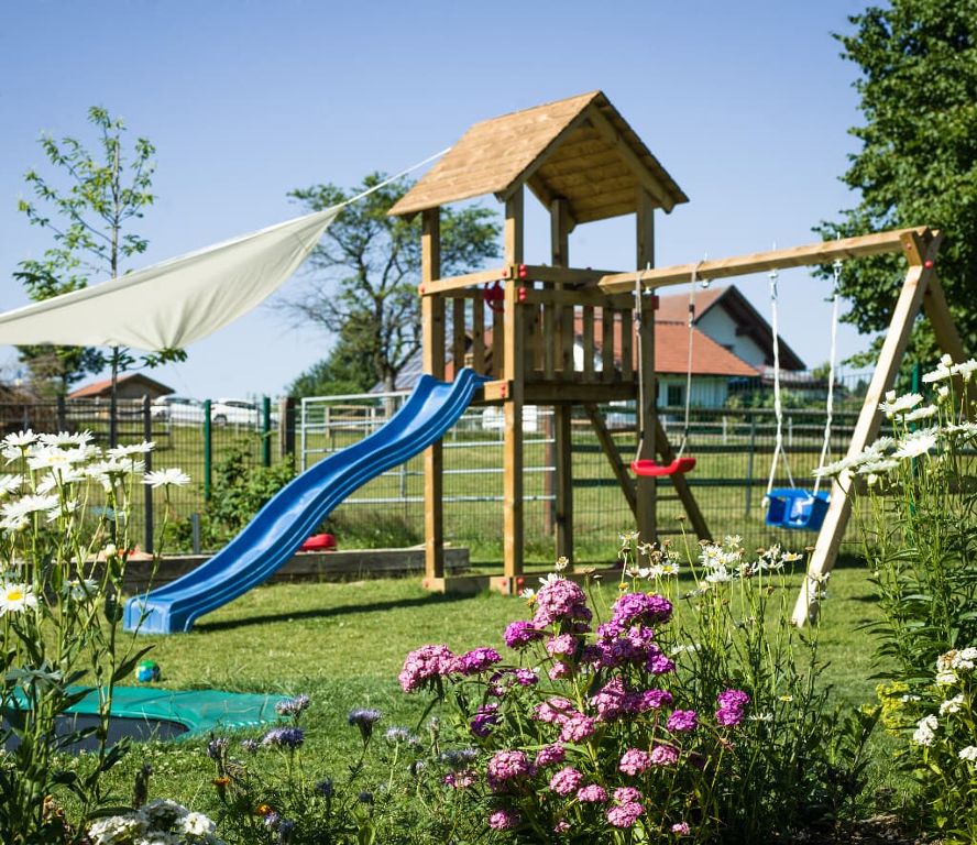 Der große Garten lädt Jung und Alt zum Spielen und Herumtollen ein. Der Kinderspielplatz mit Rutsche, Schaukel, Trampolin und unser Streichelzoo mit Reitmöglichkeit lässt alle Kinderherzen höher schlagen. Auf unsere großen Gäste warten gemütliche Liegestühle, Hängematten und eine große Liegewiese, die zum Relaxen und Sonnenbaden einladen.
