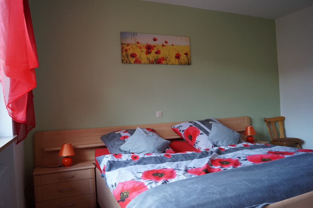 Wir sind mit unseren 6 ruhig gelegenen Zimmern gern für Sie da. Unsere Zimmer haben Sat-TV, Duschbad und WC sowie freies WLAN für unsere Gäste. Am Morgen steht für Sie ein Frühstücksbuffet bereit. Nach Absprache auch für Vegetarier. In unserem gemütlichem Frühstücksraum können Sie auch am Abend in geselliger Runde ein Glas Wein oder ein Bier trinken. Für Gäste, die gern lesen, befindet sich im Haus eine umfangreiche Bibliothek, die von allen genutzt werden kann. Seit Herbst 2017 können die Gäste in der hauseigenen Gartensauna zur Ruhe kommen.
