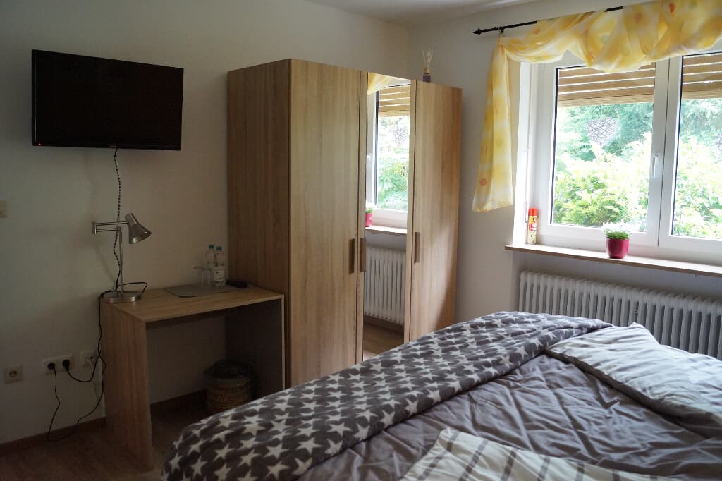 In den Zimmern finden Sie gemütliche Doppelbetten, eins davon ist auch mit einem Polsterbett möbliert. Große Schränke bieten Ihnen viel Stauraum. Ein Gefühl von Wellness erfahren Sie in den großzügigen Bädern, die mit einem Föhn und teilweise mit einem Fenster ausgestattet sind. In allen Zimmern steht auch ein Wasserkocher zur Verfügung.