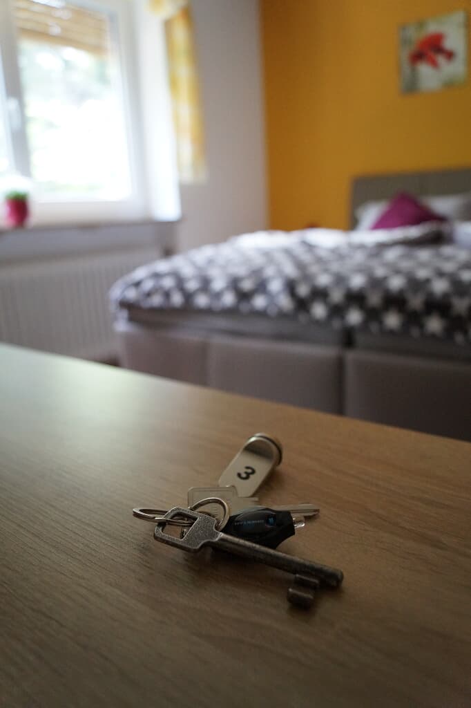 Wir sind mit unseren 6 ruhig gelegenen Zimmern gern für Sie da. Unsere Zimmer haben Sat-TV, Duschbad und WC sowie freies WLAN für unsere Gäste. Am Morgen steht für Sie ein Frühstücksbuffet bereit. Nach Absprache auch für Vegetarier. In unserem gemütlichem Frühstücksraum können Sie auch am Abend in geselliger Runde ein Glas Wein oder ein Bier trinken. Für Gäste, die gern lesen, befindet sich im Haus eine umfangreiche Bibliothek, die von allen genutzt werden kann. Seit Herbst 2017 können die Gäste in der hauseigenen Gartensauna zur Ruhe kommen.