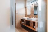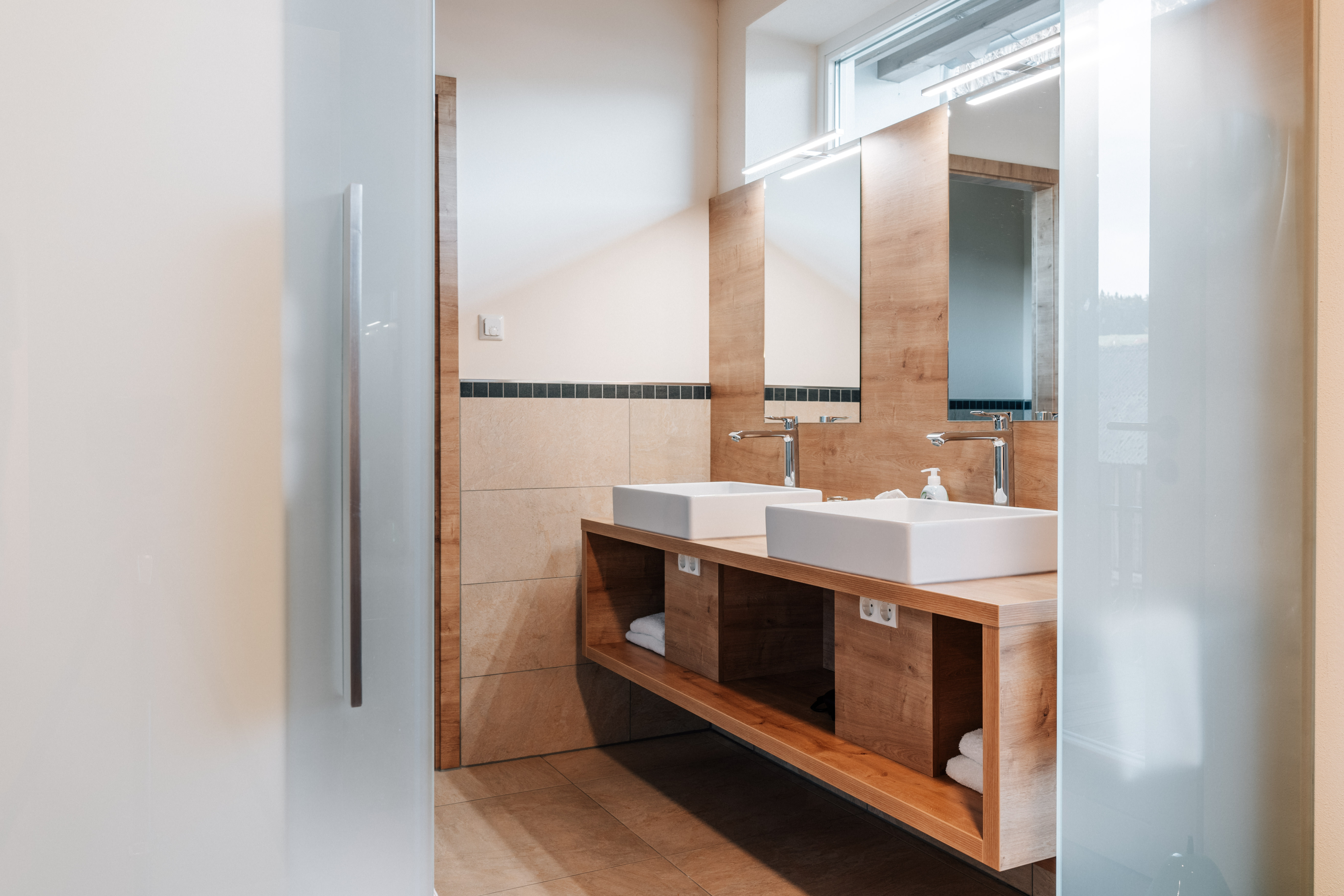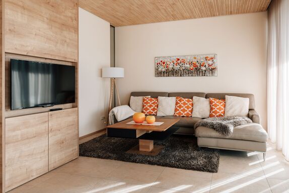 Neues barrierefreies Appartement mit exklusiver Einrichtung wie Kochinsel, Essecke, Wohnraum mit Kuschelcouch, Schlafräume mit maßangefertigten Betten und begehbarem Kleiderschrank, Wohlfühlbad mit separatem WC, Doppelwaschtisch und ebenerdiger Dusche, Flachbildfernseher in Wohn- und Schlafzimmer, überdachter Balkon und Terrasse mit Edelstahl-Gartenmöbeln und einem traumhaften Blick in die Natur.