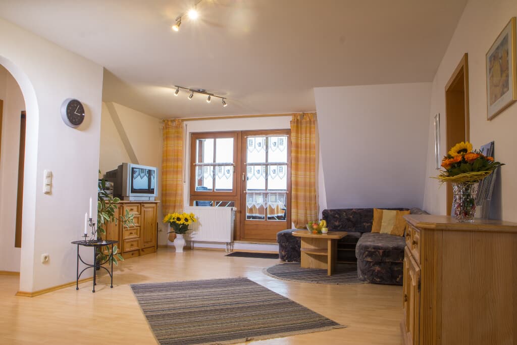 Erholung und den ganzen Tag Sonne genießen in unserer großen, ruhig am Ortsrand gelegenen, hellen Nichtraucher-Ferienwohnung. Von Ihrem Bett aus sehen Sie direkt in den Sternenhimmel und den herrlichen Panoramablick von Ihrem Balkon aus werden Sie nicht mehr missen wollen.