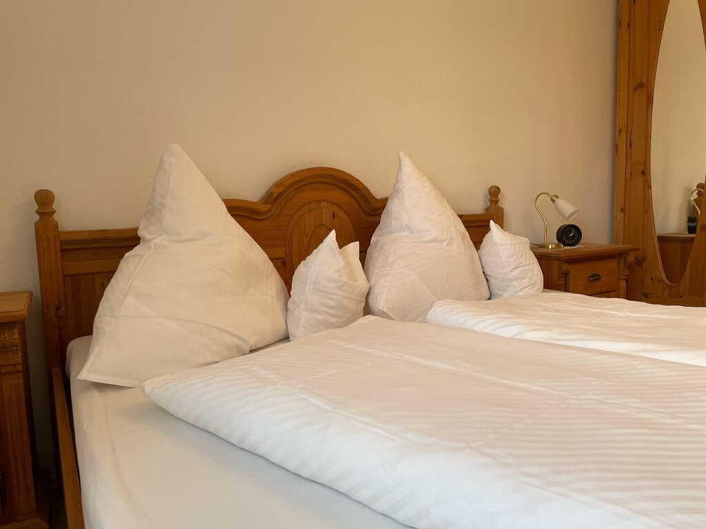 Unsere geräumigen Wohnungen verfügen über Wohn- und Schlafzimmer, Wohn- bzw. separate Küche, teilweise Balkon, Bad und Gäste-WC, Direktwahltelefon, auf Wunsch Satelliten-TV, sowie über separate Eingänge.