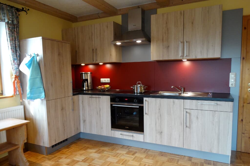 • Wohnküche mit komplett ausgestatteter Küche (Geschirrspüler, Induktionsherd, Backofen, Kühlschrank, Gefrierschrank, Kaffeemaschine, Toaster, Wasserkocher, Eierkocher, Geschirr, Besteck, Kochgeschirr; im Januar 2018 erfolgte der Einbau einer neuen Küche mit neuen Geräten!), gemütlicher Eckbank und Couch
