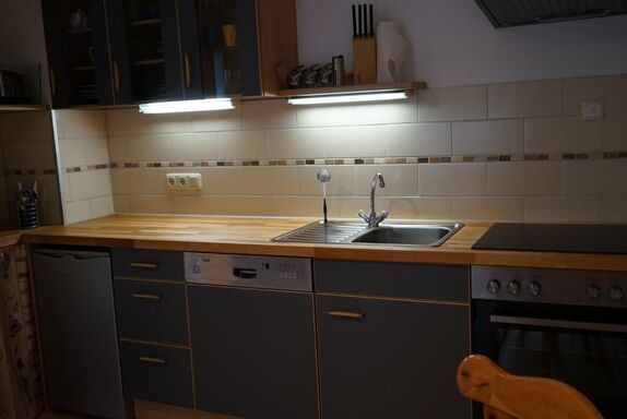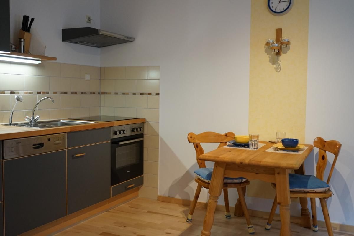 Desweiteren verfügt die Wohnung über einen Wohnessbereich mit einer schönen Küchenzeile plus Esstisch. Diese ist vollausgestattet mit Geschirrspüler (inkl. Reiniger), Kaffeemaschine, Toaster, Mikrowelle, Wasserkocher etc.