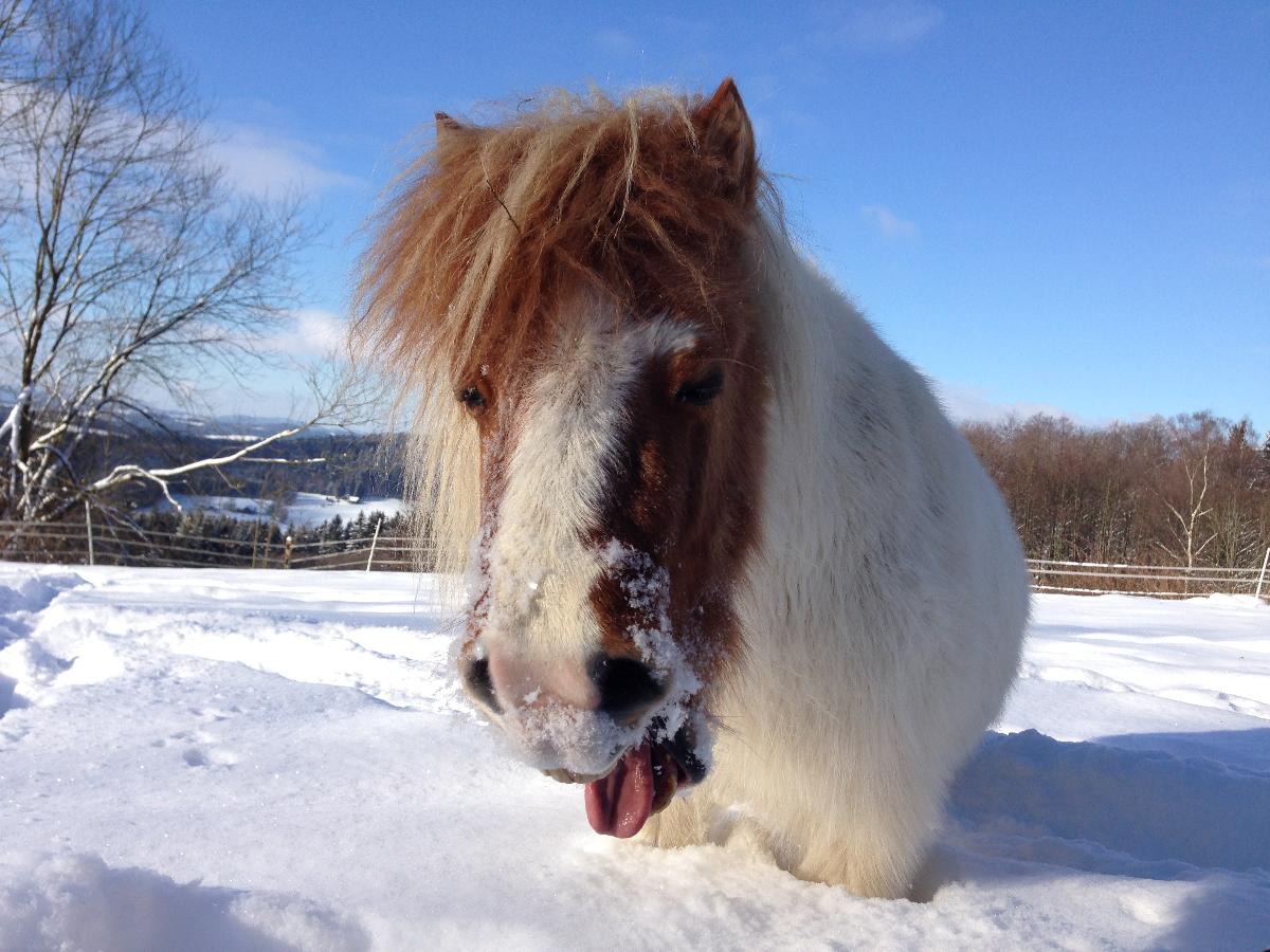 Bei uns wohnen derzeit mehrere Katzen, zwei Hunde und zwei Ponys.