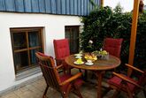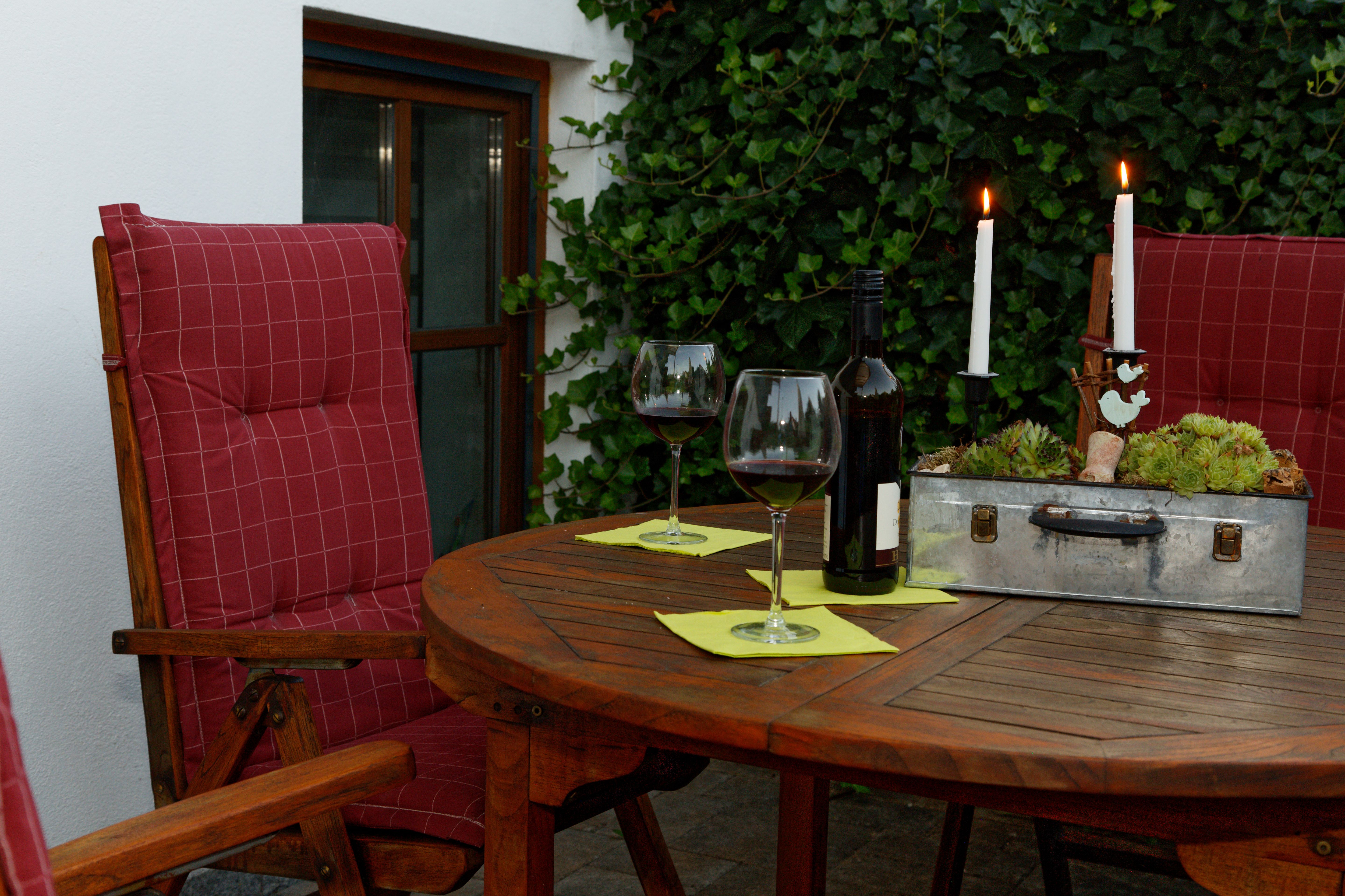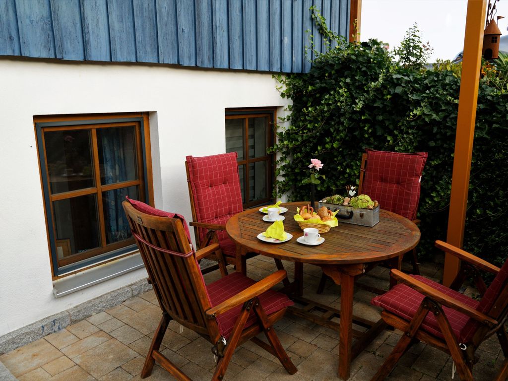 Auf der nach Osten ausgerischteten überdachten Terrasse genießen Sie Ihr Frühstück in der Morgensonne.