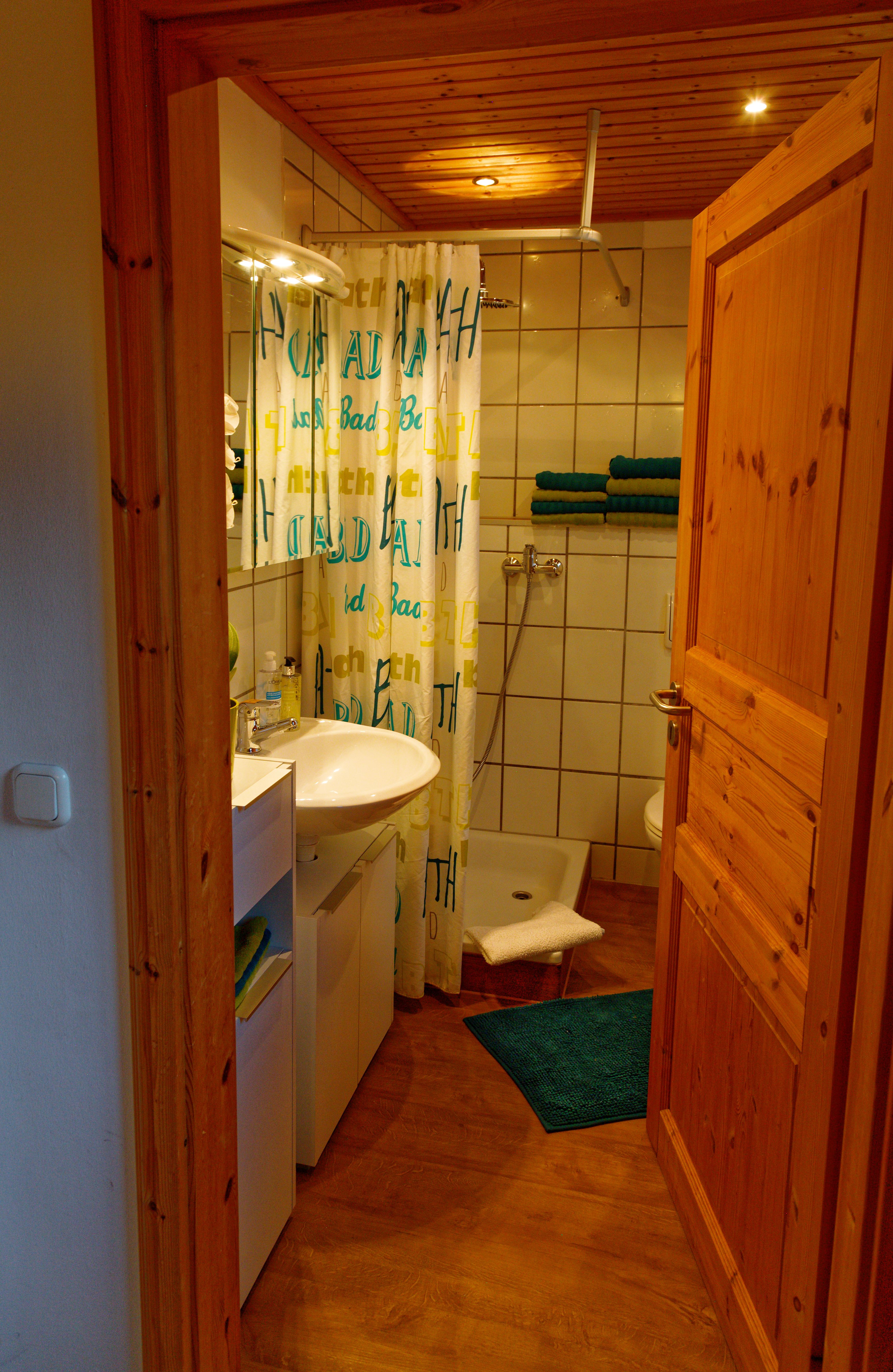 Das kleine aber feine Badezimmer mit Regendusche rundet das Gesamtbild ab.