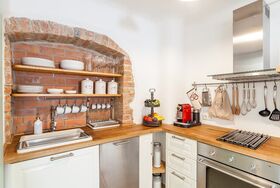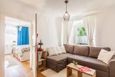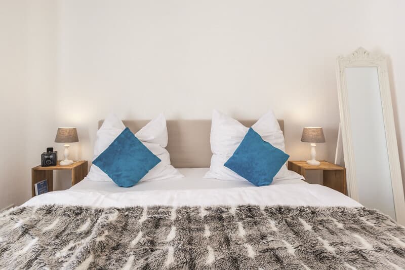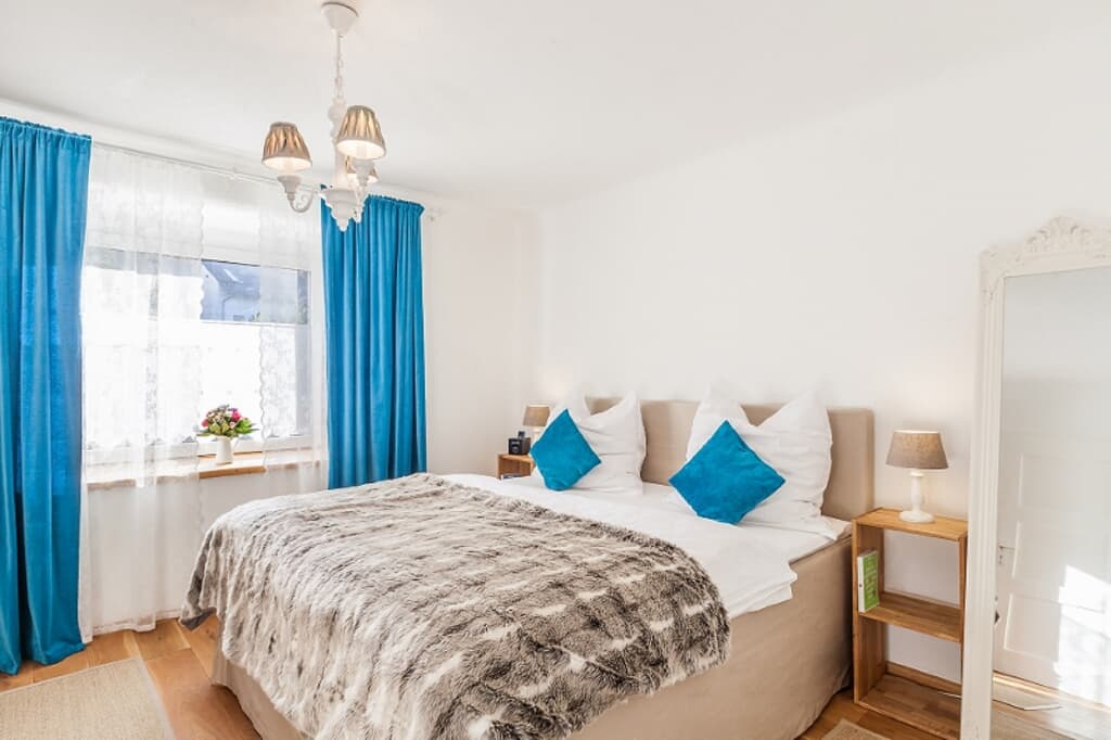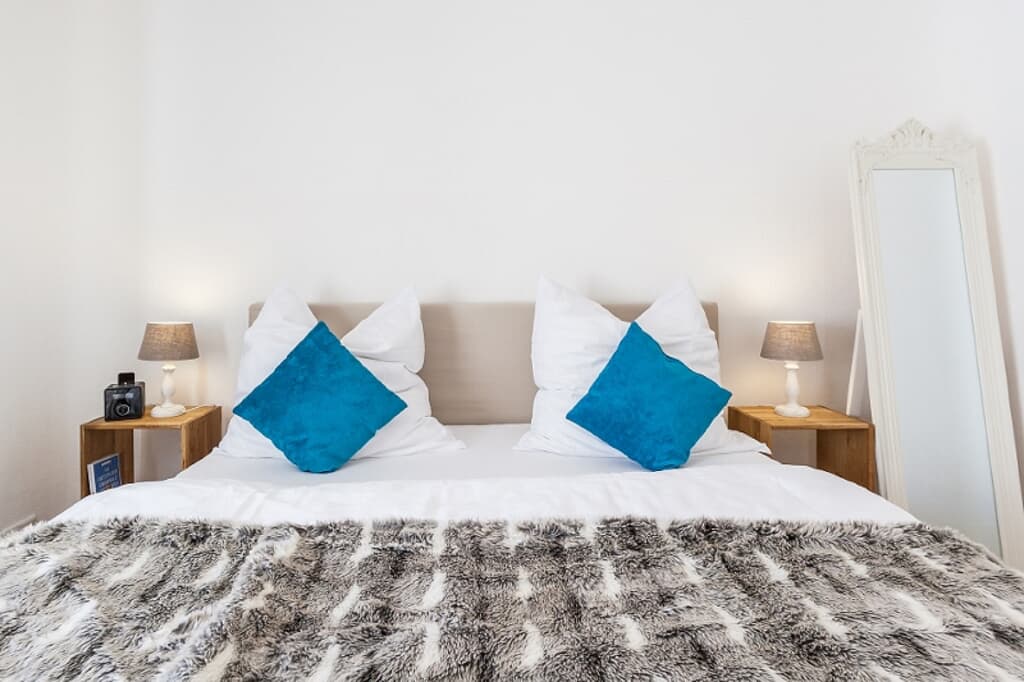 Die Wohnung ist für zwei Personen ausgelegt. Ein hochwertiges Boxspringbett sorgt für erholsamen Schlaf und kann auf Wunsch auch getrennt gestellt werden. Für einen weiteren Erwachsenen oder bis zu zwei Kinder steht eine komfortable Schlafcouch bereit.