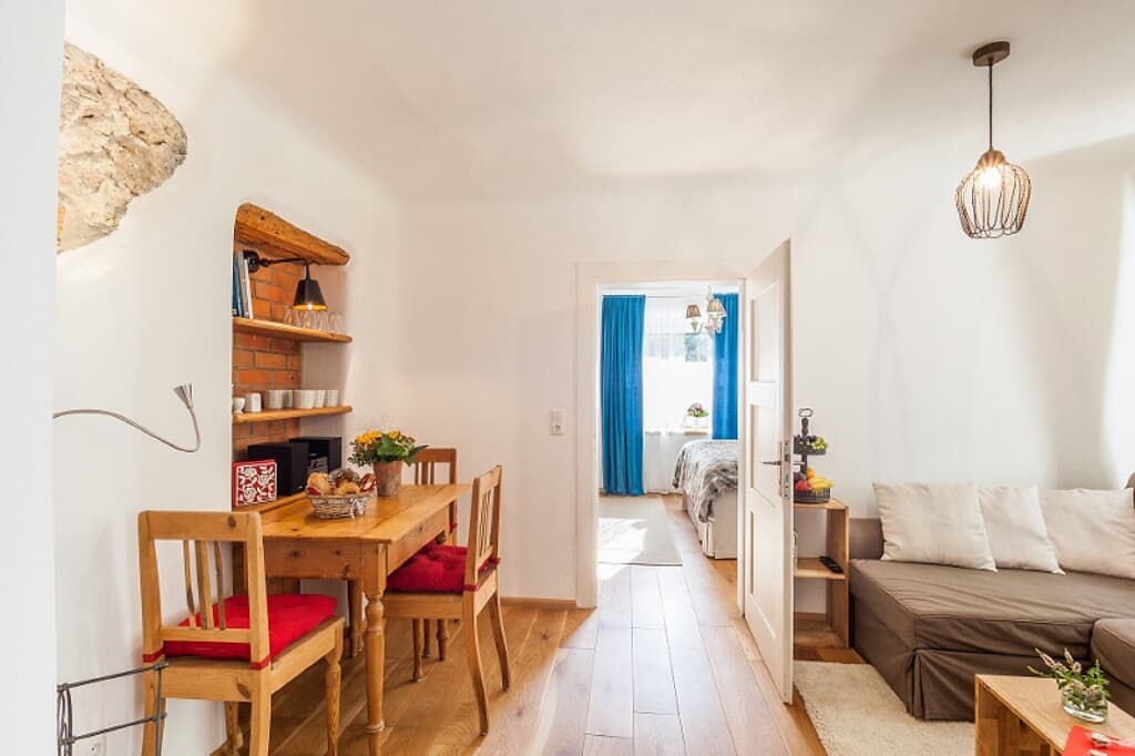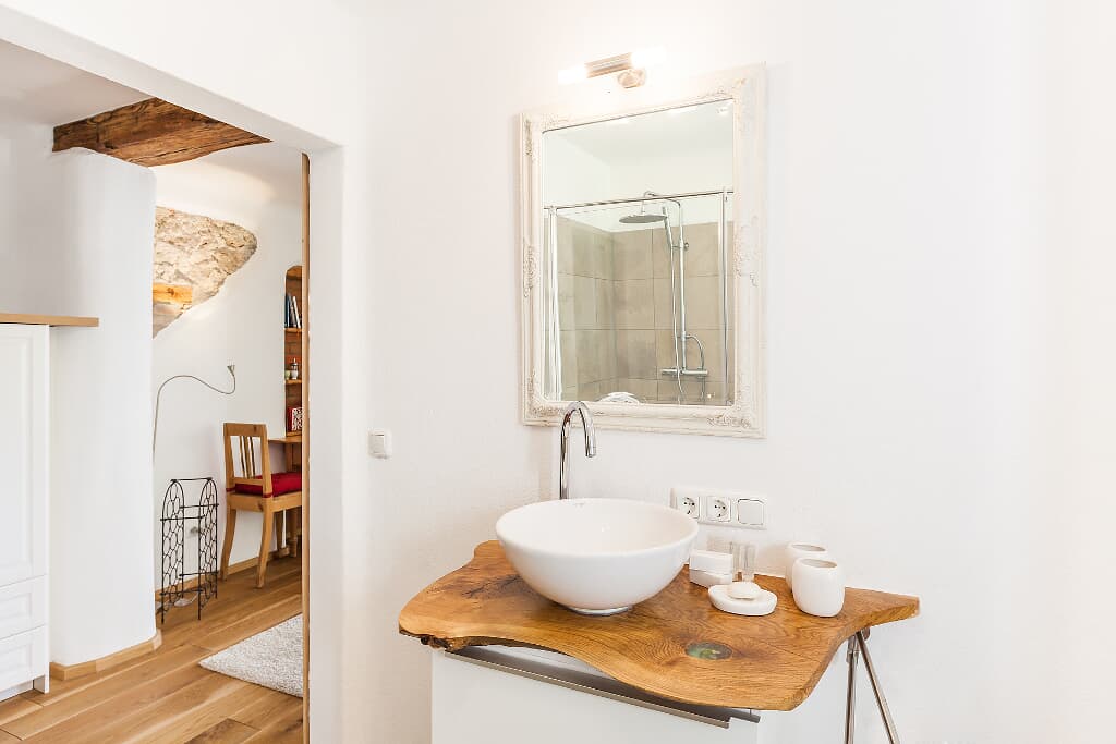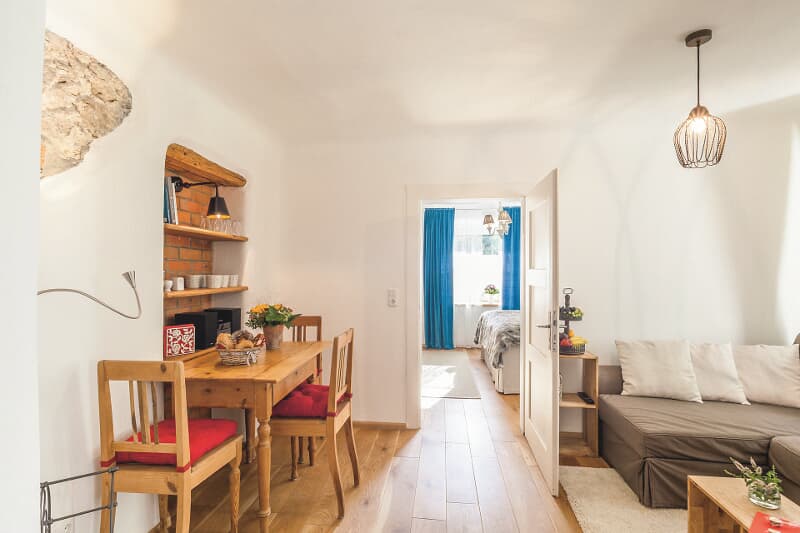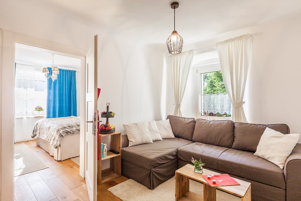 Die Ferienwohnung „Schleifmühle“ liegt im historischen Ortskern von Laaber, einem kleinen Juwel im Tal der Schwarzen Laber. Direkt am Labertalradweg und mit guter Anbindung an Regensburg ist sie der ideale Ausgangspunkt, um Natur, Kultur und die vielfältigen Rad- und Wanderwege der Umgebung zu entdecken. Die charmante Wohnung ist Teil eines historischen Gebäudes und wurde 2014 liebevoll saniert. Hochwertige Naturmaterialien, ausgesuchte Möbelstücke und moderne Technik schaffen ein komfortables, gemütliches Ambiente zum Ankommen und Wohlfühlen – ganz wie bei Freunden zuhause.