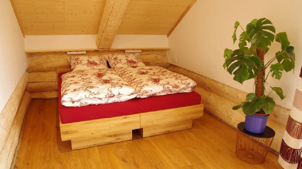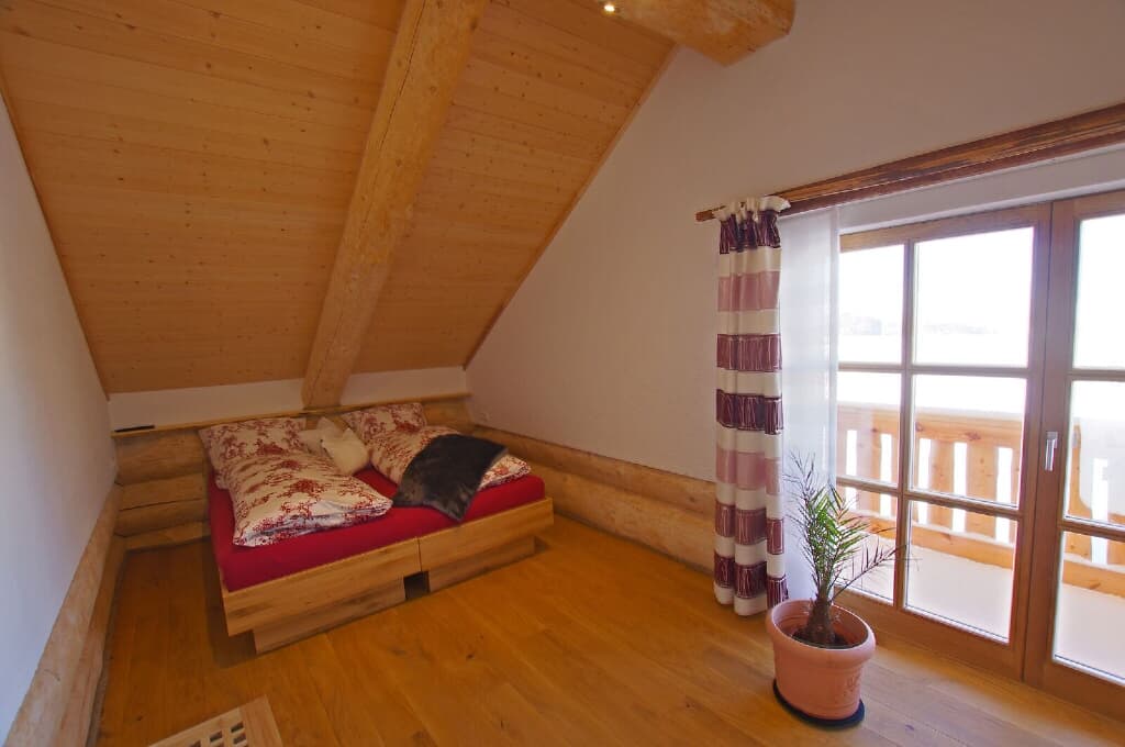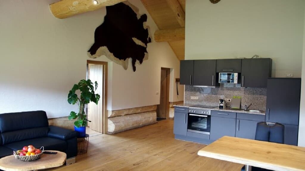 Die Ferienwohnung Holzwurm im Dachgeschoss für 2 Personen, verfügt über eine hochwertige Ausstattung verknüpft mit bodenständigem und modernem. Großzügige komplett eingerichtete Wohnküche, 1 Schlafraum, Bad mit Whirlpoolbadewanne, Dusche und einem großzügigen Balkon. Die Wohnung hat ca. 70 m². Sat-TV in jedem Zimmer, sowie W-Lan im ganzen Haus.