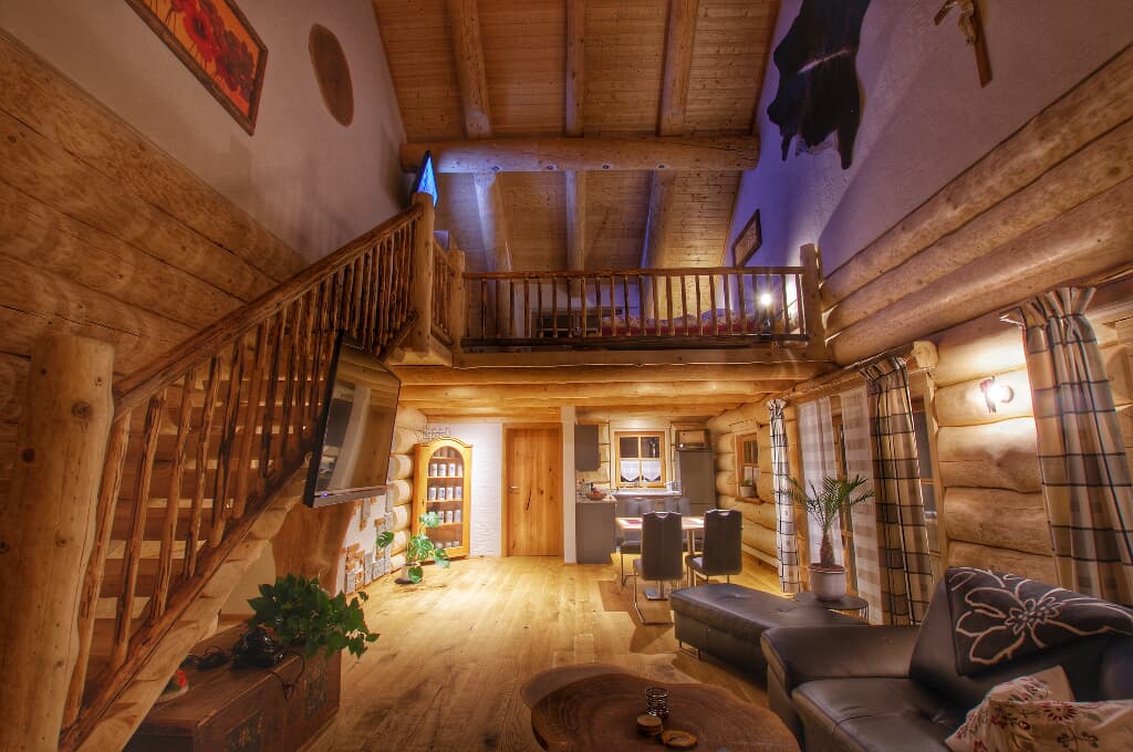 Romantischer Urlaub im Holzblockhaus mit vielen besonderen Höhepunkten. Rustikale Altholzbetten und Whirlbadewanne laden zum Relaxen ein. Herrliche Aussicht von Balkon und Terrasse. Zu allen Anlässen wie Geburtstage, Hochzeiten und andere Feierlichkeiten kann unser Holzhaus bis zu 10 Personen beherbergen. Oldtimer-Ausfahrten mit Fahrer können bei uns gebucht werden. Ab Herbst 2020 können Sie sich in einem Außen Hot Tub für 70,00 EUR/Tag verwöhnen lassen.