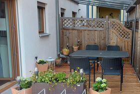Und hat einen Zugang zur separaten überdachten Terrasse .