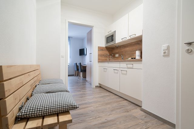 Unser 2 Raum Familien Appartement ca. 40m² besteht aus 1 Appartement mit einem Doppelbett , Küchenzeile , SAT TV , Sitzgelegenheit , Dusche/WC , Föhn und Kostenlosem WLAN .