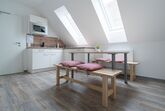 Unser Dreibett-Apartment ist ca.40 m²groß und verfügt über eine gut ausgestatteten Küche mit Sitzgelegenheit .