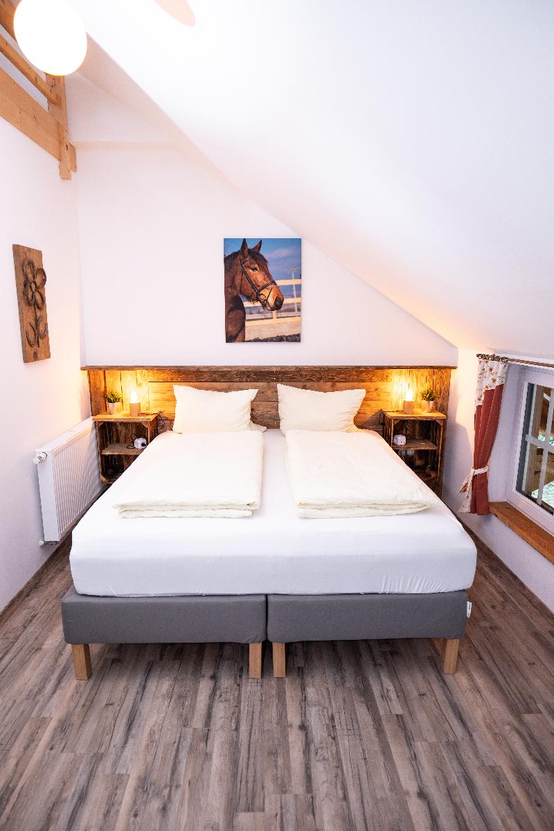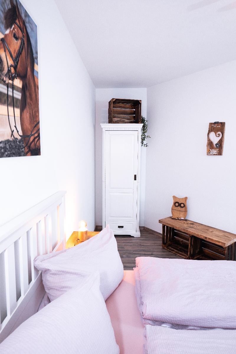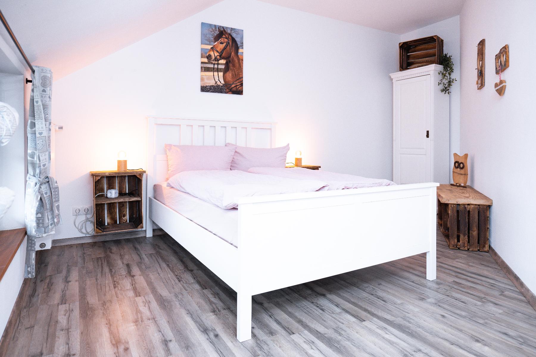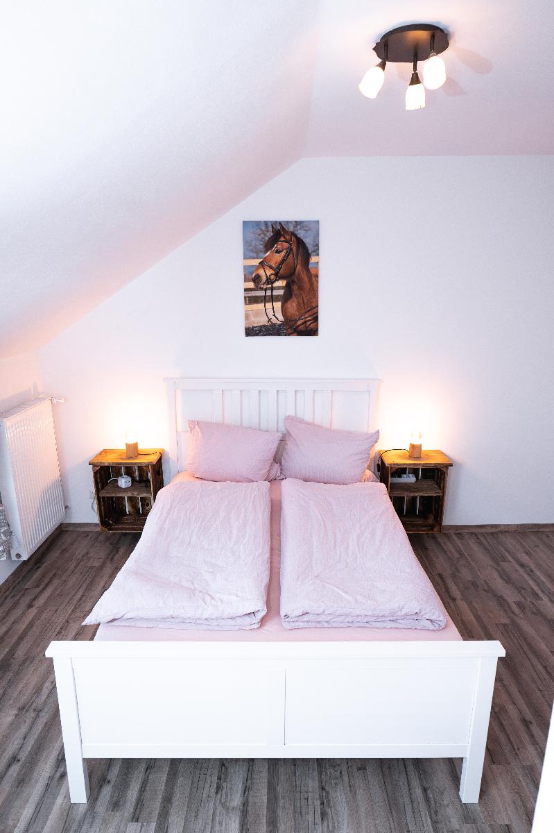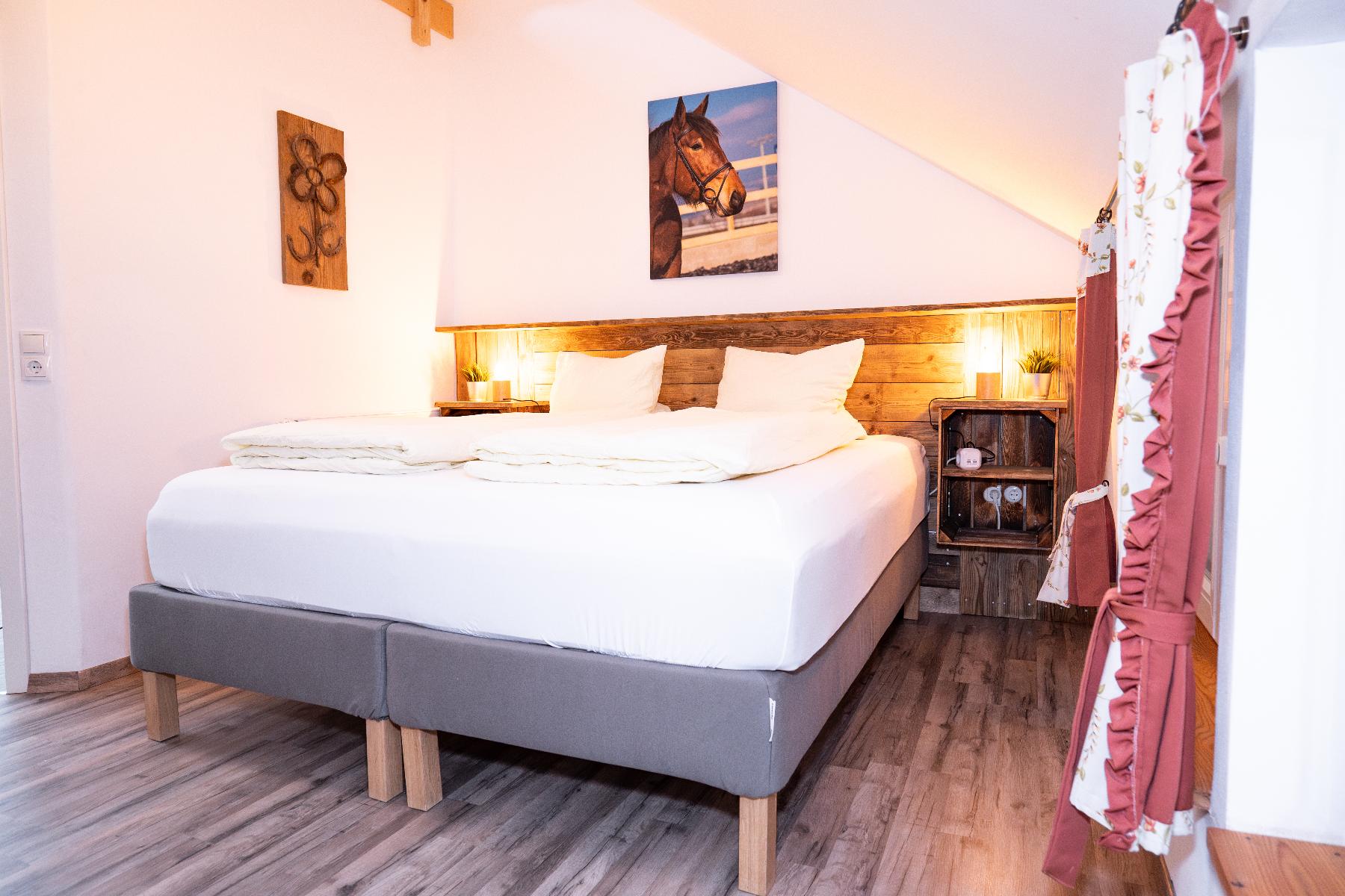 Die Ferienwohnung Stallblick mit zwei großen Schlafzimmern ist ca. 120qm groß und ideal geeignet zum gemeinsamen Reisen mit Großeltern oder zweier befreundeter Familien, aber auch schon ab 2 Personen gemütlich.