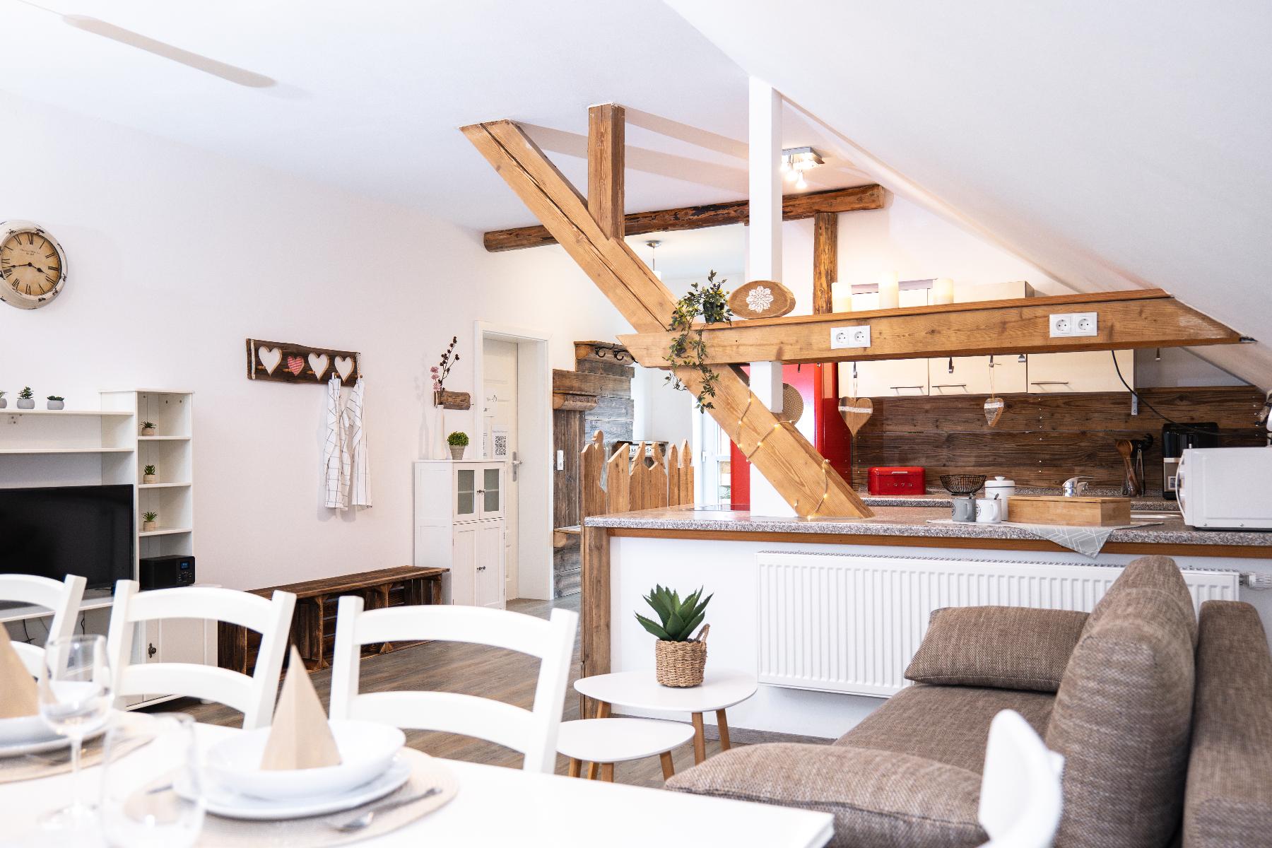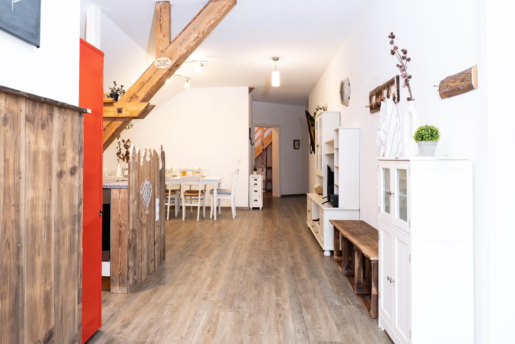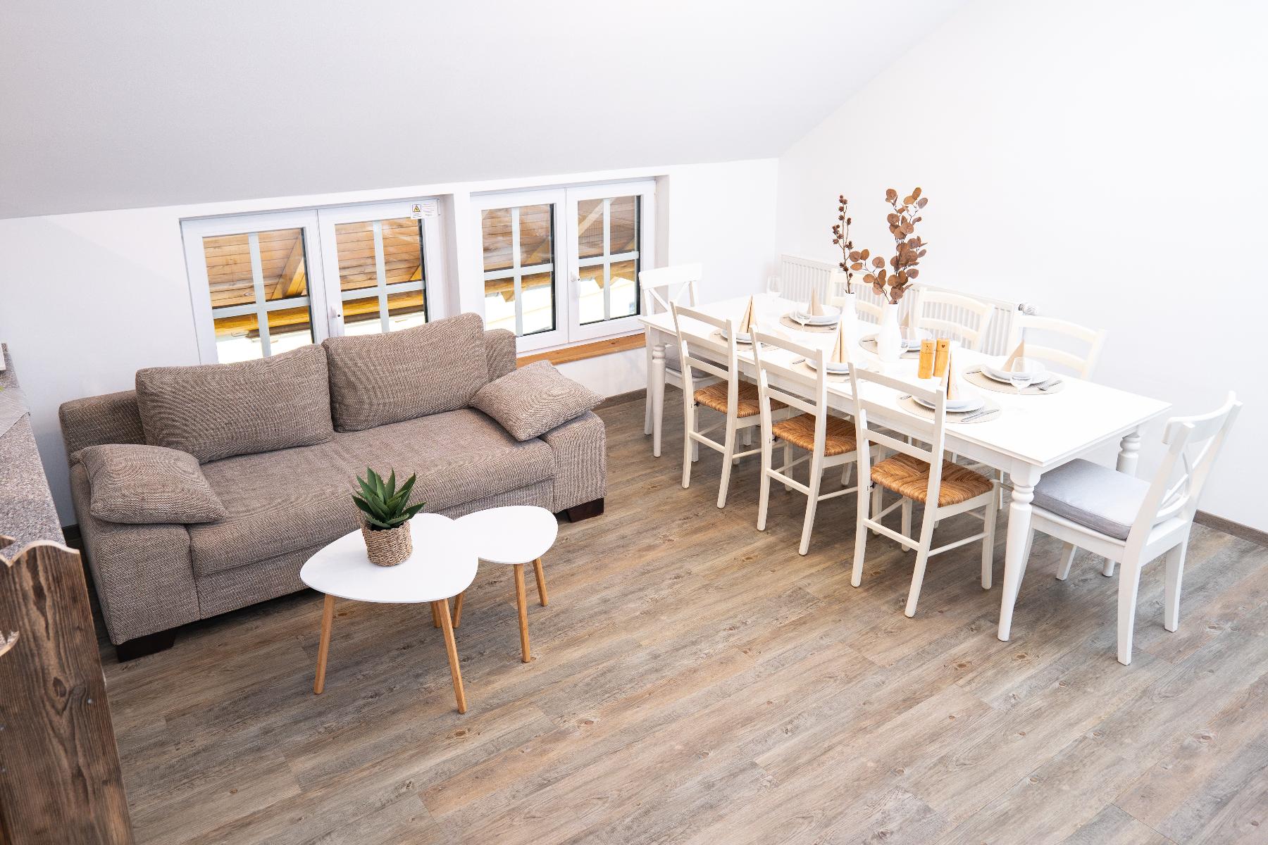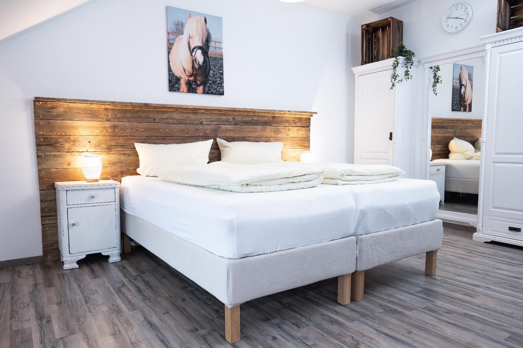 Die Ferienwohnung Stallblick mit zwei großen Schlafzimmern ist ca. 120qm groß und ideal geeignet zum gemeinsamen Reisen mit Großeltern oder zweier befreundeter Familien, aber auch schon ab 2 Personen gemütlich.