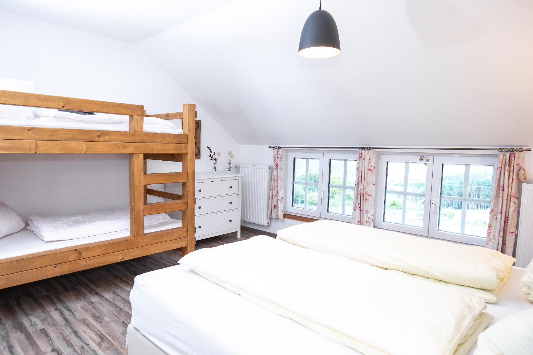Alle Räume sind hell & liebevoll eingerichtet, einer der Schlafräume bietet direkten Blick ins Tal und auf die Pferde.