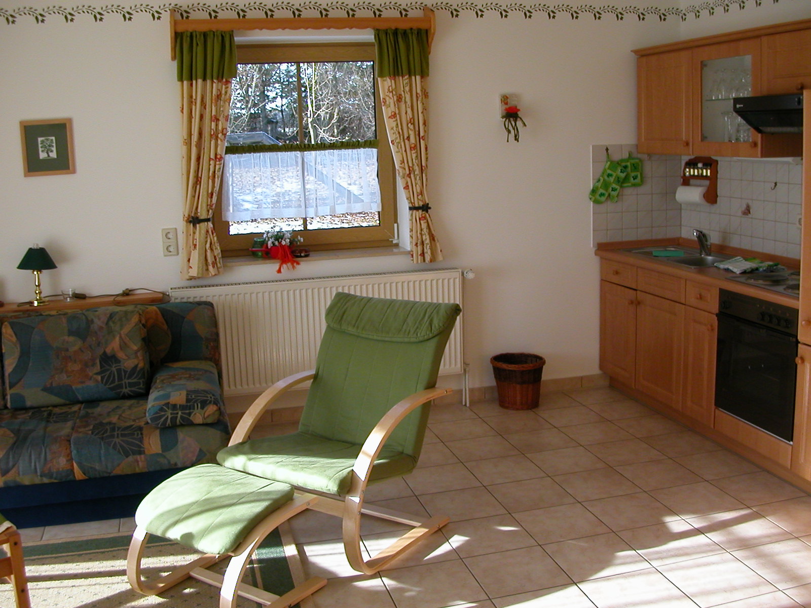Alle Wohnungen sind nach ökologischen Gesichtspunkten mit Naturholzmöbeln und Parkett- bzw. Fliesenböden liebe- und geschmackvoll ausgestattet. Die Vorhänge und Fensterläden runden den ländlichen Stil ab.